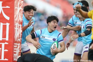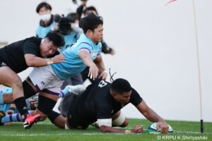 まずは9シェイプのところでフォワードが前に出れたのが一番大きかったかと思います。あと、ラックでプレッシャーを受けることは想定していたので、9番の白栄 拓也選手が自分のすごくいいテンポで出してくれたのが自分のトライにつながったところもありますし、まずフォワードが前進できたところとクイックボールが出たところが相手からしたら嫌だったところかなと思います。