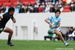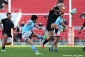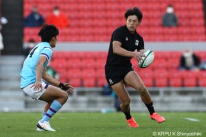 春から10番を背負わせてもらっていて、対抗戦明治さん、早稲田さんと4連敗を喫してすごく自分でも納得いかないプレーばかりでかなり試行錯誤したんですけど、4年生のフォワード先輩方がしっかりとミスしても取り返してくれるように身体をはってくれたり、バックス陣としっかりとコミュニケーションをとったりして、自分を支えてくれて、それで自分も自信になって思いっきり仕掛けるようになってからすごく自分も満足いくようなプレーがわずかですけど出てきたなというような感じです。