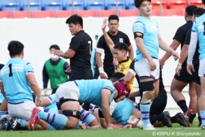 軸はもちろん変えていないですが、先ほど楢本が言ったようにバックスのコンビネーションのところでのエラーであったり、スペースに運べないとかいくつかありました。そのへんの修正がしっかり筑波のグラウンドでやり切ったり、少しシステムをいじったりすることがあったんですけど、それを繰り返しながら対抗戦後半を戦えたことが非常に大きかったかなと思います。これはリーダーとも相談して、シーズン序盤からグラウンドレベルでしっかりと身体をあてる、スローガンにもあるようにそれをこの時期もしっかりやろう、やれた、ほんとにBチームを含めてチーム全体の強度があがった練習ができている中でそれをグラウンドで体感させてもらえたことが僕は結びついたことにつながっているのかなと思っています。