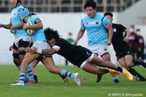 やってみて、春よりプレッシャーが強くて、そこは筑波大学さんのビデオを見てレビューした時も全く別のチームになっているということは小松監督からも言われていましたし認識はしていたんですけど、予想以上にしつこさはすごく感じました。ブレイクダウンとか接点とかしつこいなと感じました。