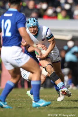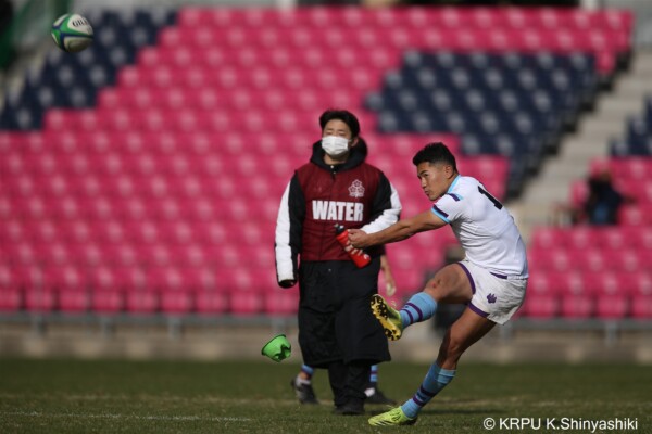 風上の前半はエリアを取ってある程度、優位に進められたと思います。逆に、後半には東海大学がエリアを取ってきましたが、筑波大学のバックスが上手くエリアを取って、状況を見てカウンターアタックするとか良い判断をしてくれました。