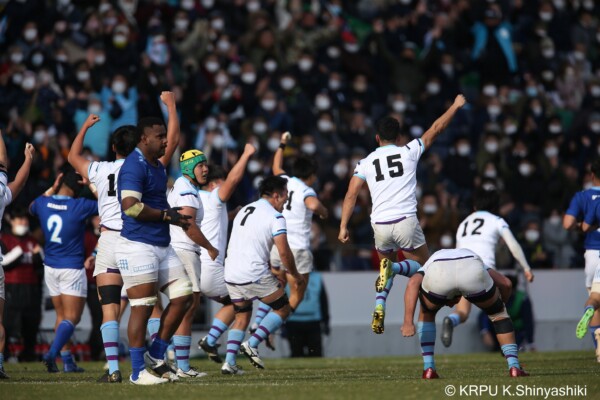 風下でしたが敵陣に入って攻撃の時間を持てれば、ワンチャンスでひっくり返せると思っていました。接戦を制するためにフレッシャーをかけて、相手のトライを隅にさせた結果、5点に抑えたことが重なって、最後の3点差の勝利に繋がったと思います。