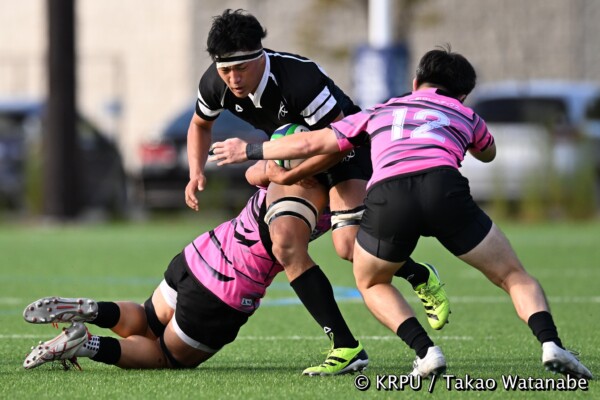 逆に40分、府警が左22mL付近のLOモールを一気に押し込んで、16番HO山口翼が左中間にダメ押しのトライ。GKも成功したところでノーサイドとなる。(15-28)