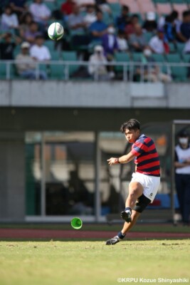 しかし京産大は8分に7番三木晧正が中央へトライし14-7、1