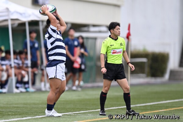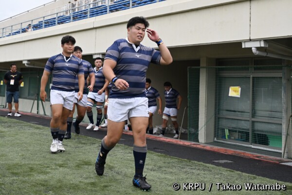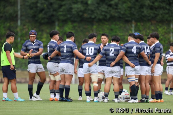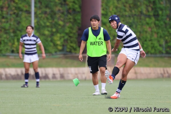 今日の試合は同志社大さんの強みである、BKのアタックをしっかり止めて、関大の強みであるラインアウトのモールを出せるかにフォーカスしました。75分間同志社さんにリードされる中で、学生が頑張って最後まで繋いで、キックを決めてと、しんどい時にチームが結束してくれた試合を見て感動しました。次戦に向け連勝できるように頑張って行きたいと思います。