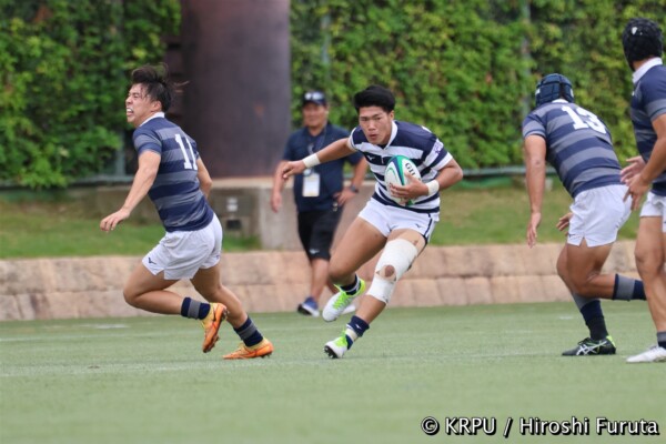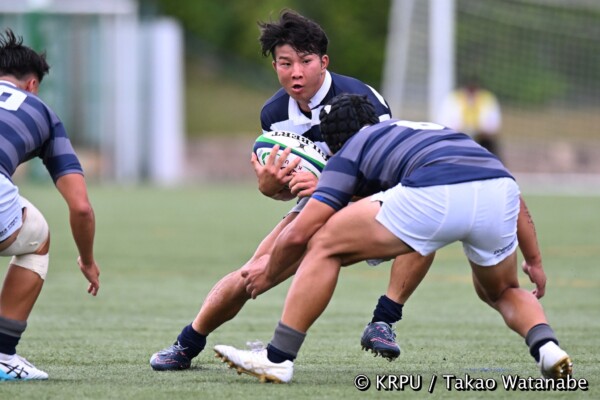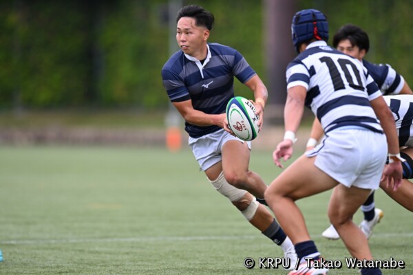 4年生として周りからの信頼も厚く、経験も豊富なので全体的なバランスをみてFBに置いていましたが、2試合戦ってコントロールする部分も必要だと思いハーフ団を変えました。