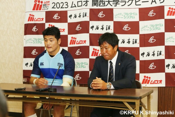 戦う意志が関学の方が上回っていたと思います。ラグビーは接点で勝たないと勝てないスポーツだと私は思っていまして、終始ファイトする姿勢が摂南大学には足りなかったのが残念でした。只、決してそこが出来ないチームではないと思っていますので、そういった部分をもう一度チームで考えてほしいと思います。大学選手権出場を目標としてやっている形の中で毎年そうなのですが最初に2敗3敗としてしまうと、そこから勢いを失くしてしまうことが我々のチームの課題と思っていますので森山キャプテンを含め四回生がどう奮起してくれて次節以降、しっかりと戦うチームを作っていきたいと思います。