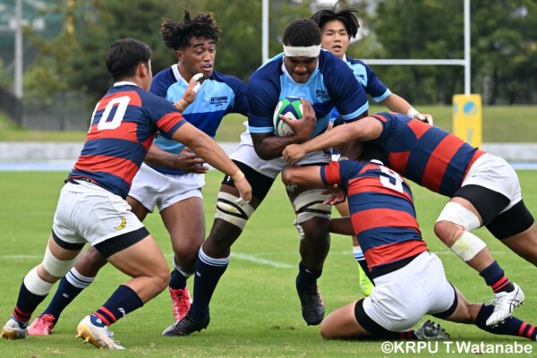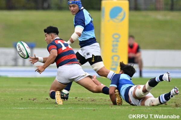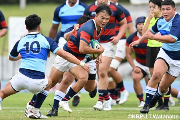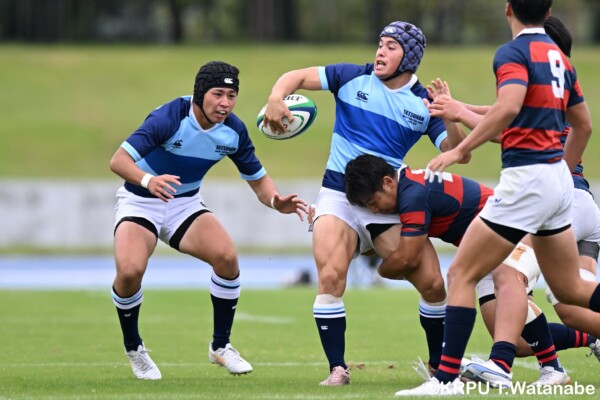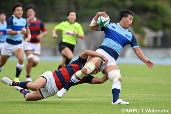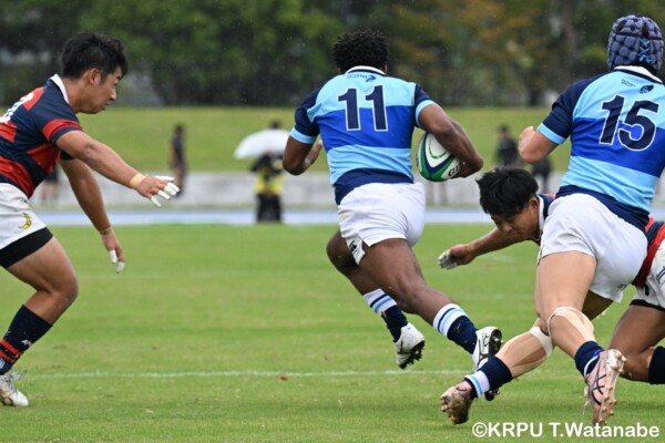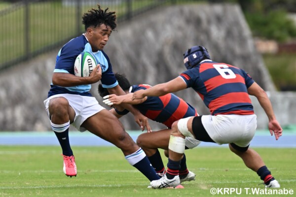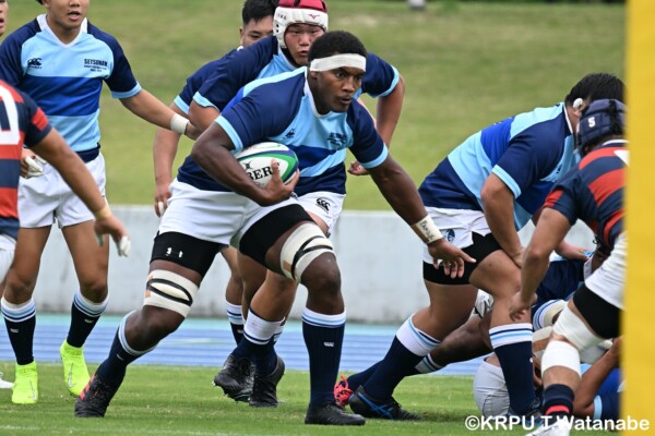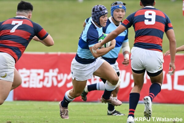1試合は関西学院大学VS摂南大学が対戦する。関学大はひたむきにやるラグビーが巧を奏し開幕から連勝、勝点8を獲得し試合後半に力強さを発揮している。