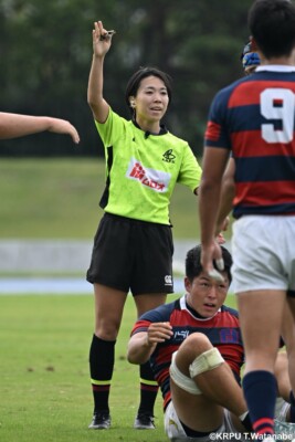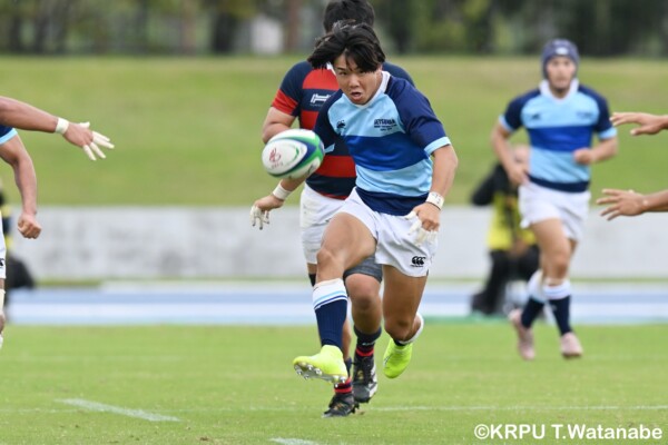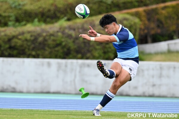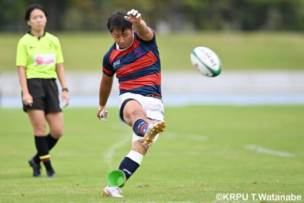 24分には関学大が敵陣20m右中間のノットリリースのペナルティからショットを選択し、SO齋藤綜馬が敵陣20m右中間からのPGを成功。37