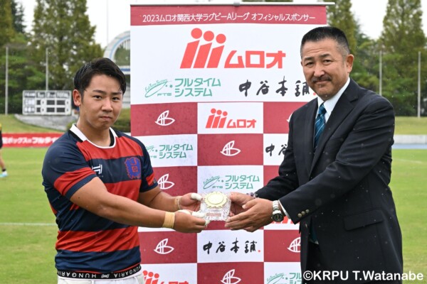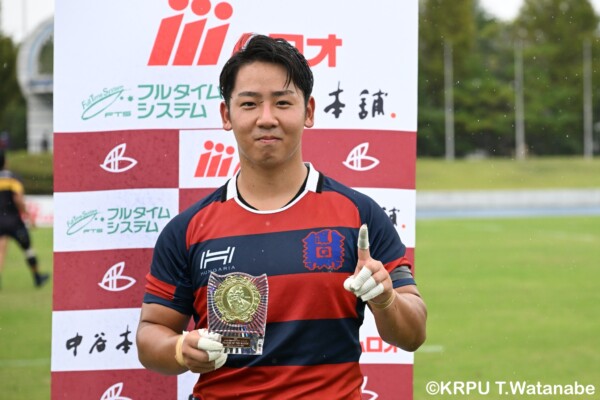 POMにはゲームをコントロールしすべてのキックを成功させた関西学院大学SO齋藤綜馬選手が選ばれた。