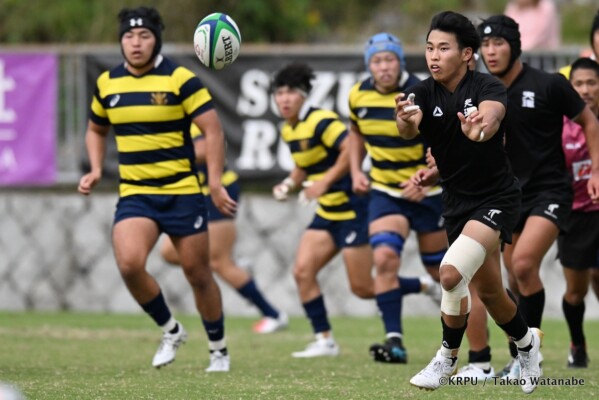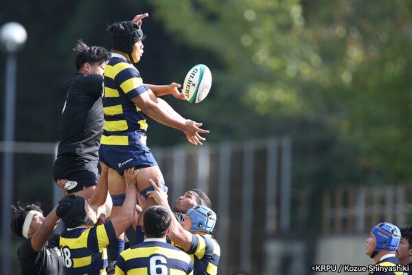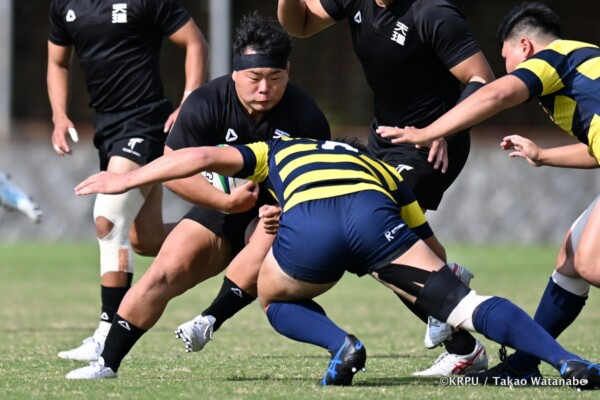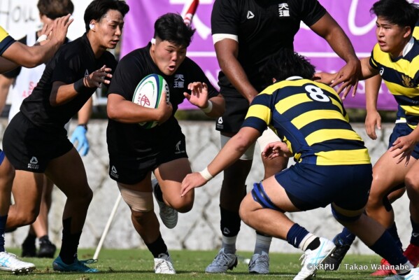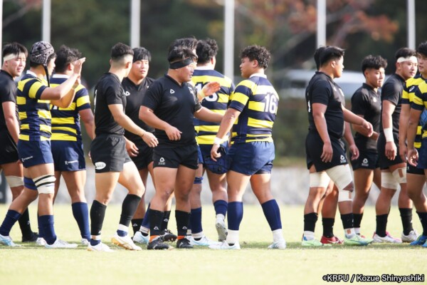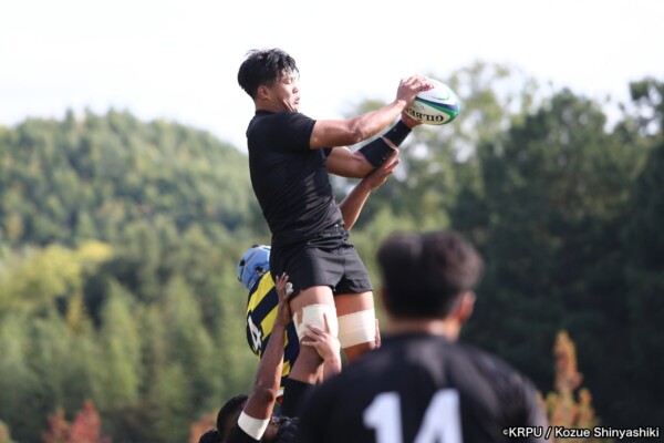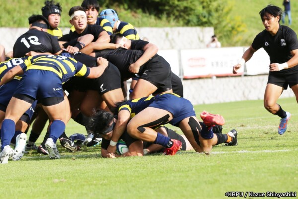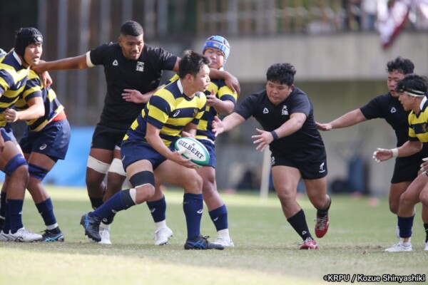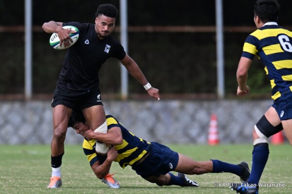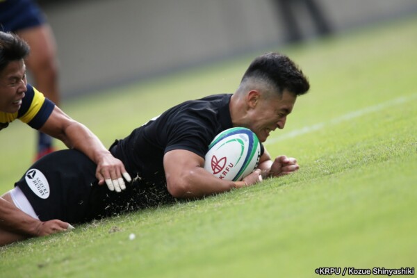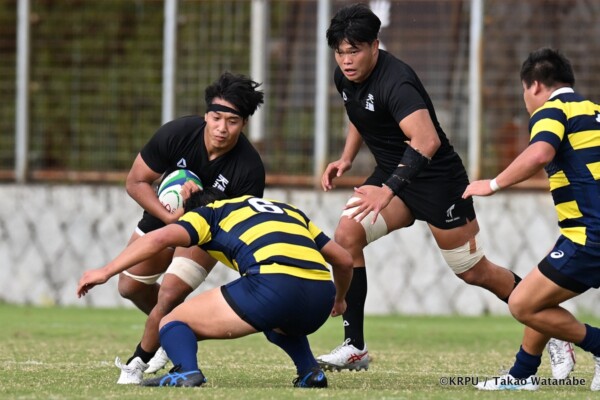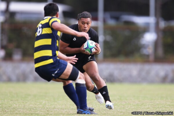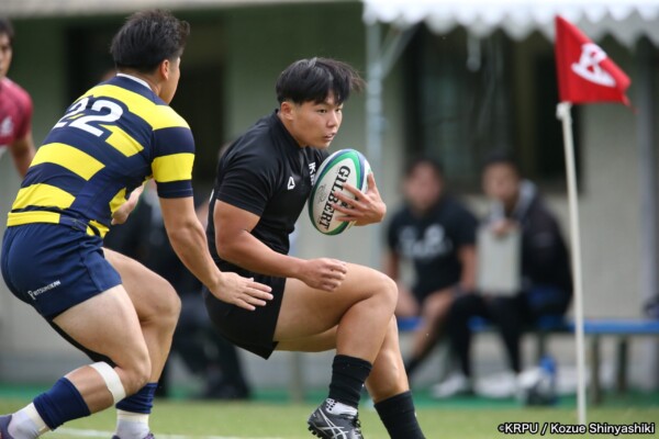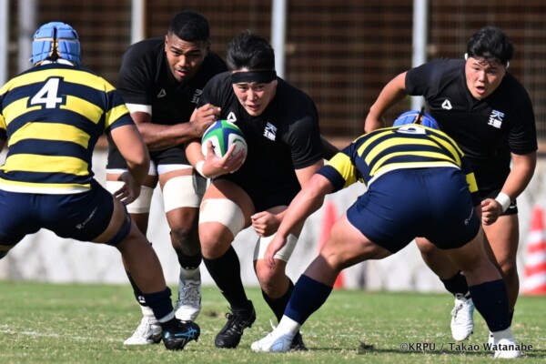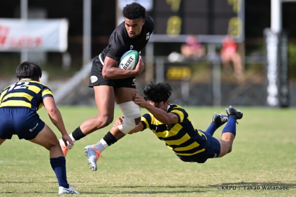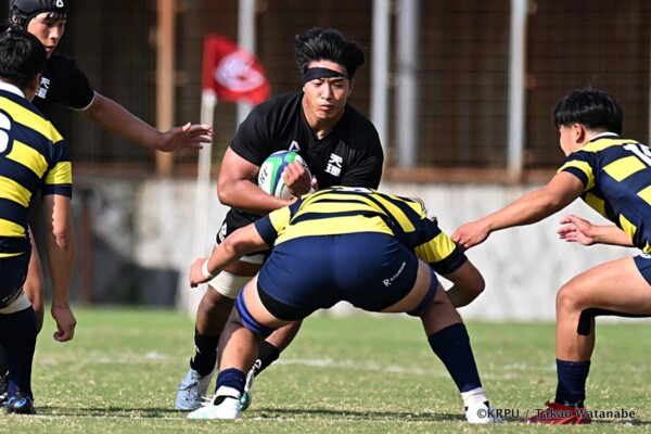 32分はHO⑯稲嶺翔太、37分にはSH㉑高岸尚正(SO㉓中村仁GK成功)、最後は42分⑪藤原のトライ(GK成功)で10トライと立命大を寄せ付けず、今シーズン初めての完封勝利の4連勝(勝点19)でリーグ後半戦(前年度上位校との対戦)に向かう。(68-0)