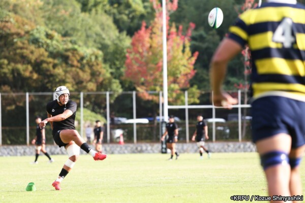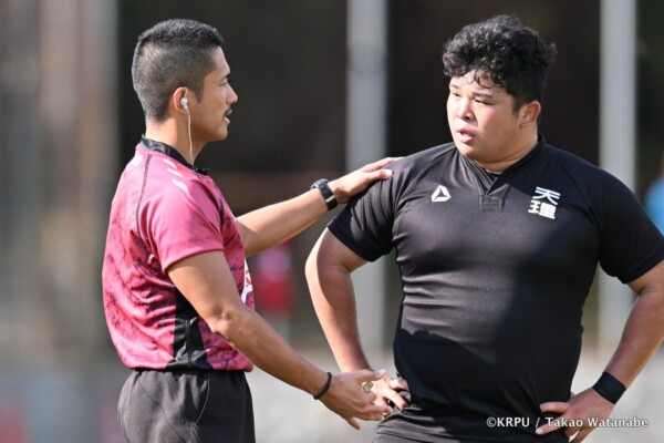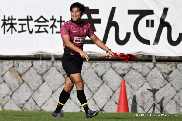 前節の京都産業大学さんや天理大学さんはスクラムが強力なので絶対に反則はしないと練習から言い続けていたのですが、チームに浸透させるのには甘かったのかなと思います、オフサイドとかしようとは思っていないですし、またロールアウェイは相手に乗られてしまってアンラッキーな部分もありましたが、規律の部分ではしっかり修正していかなければと思っています。