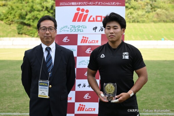 POMには、天理大SO⑩筒口允之が選出された。GK(7/7)は見事であった。