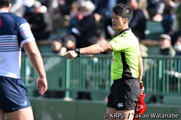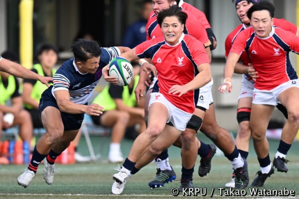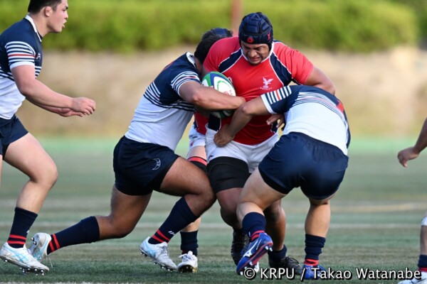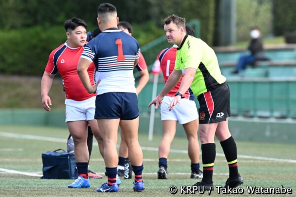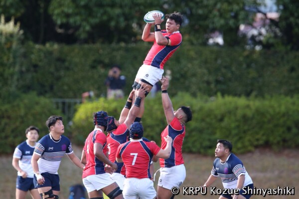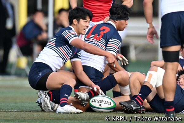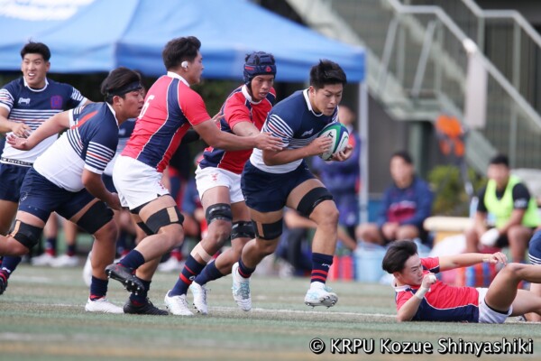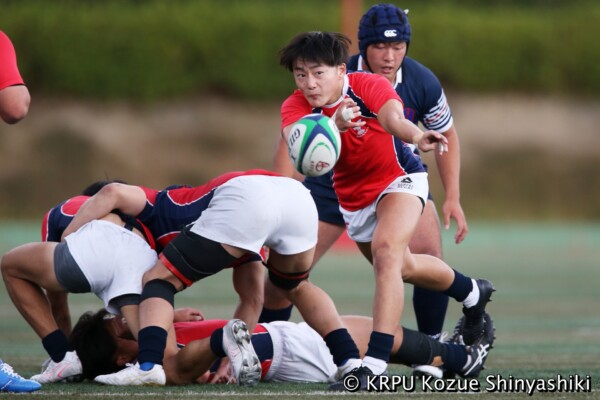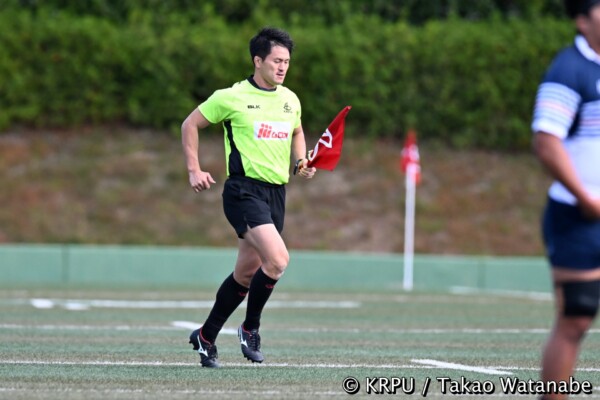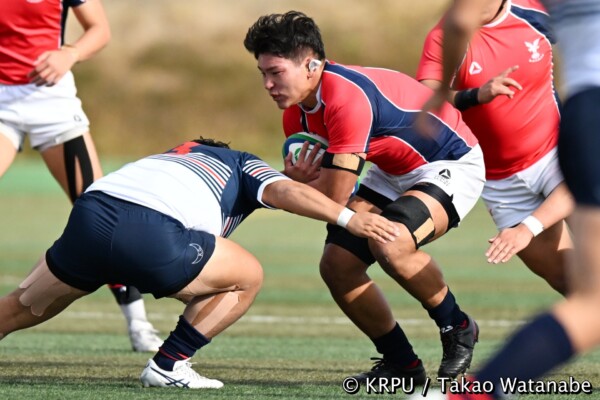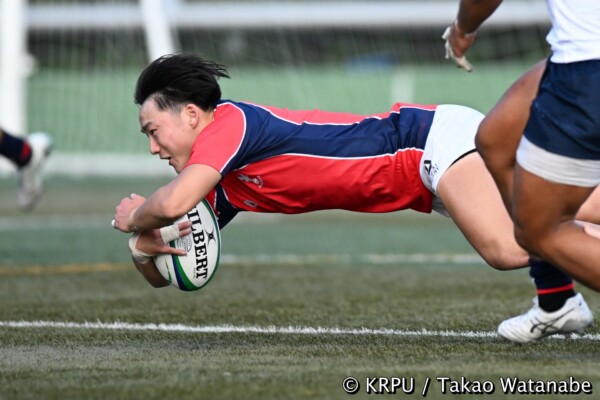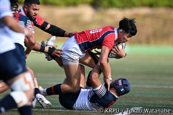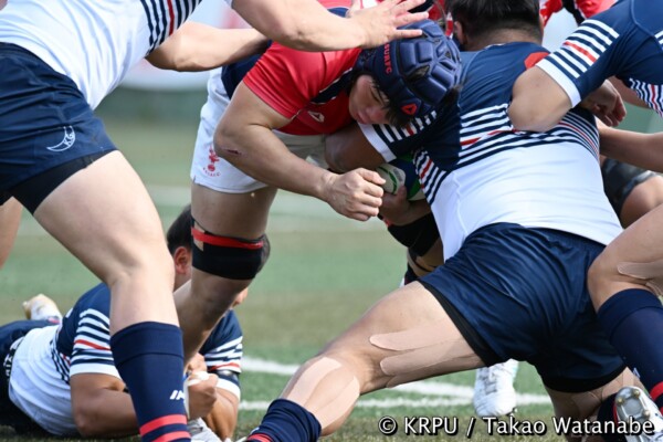 4戦全勝同士で、関西学院大学さんはフィジカルが非常に強いので、我々もそこで負けずに必ず勝ちたいという思いでのぞみました、前半は関学大さんのプレッシャーを受けましたが、うちも得点にはつながらなかったのですが、FWでプレッシャーをかけ続けて、終了間際のトライでようやく主導権を握ることが出来たと思っています。