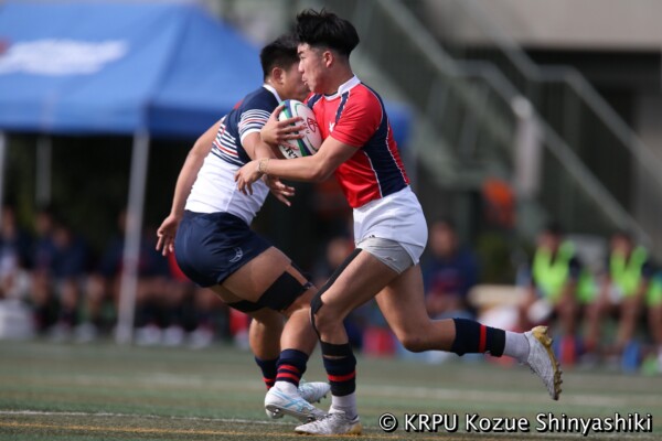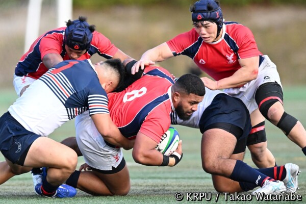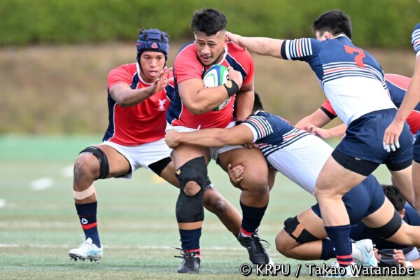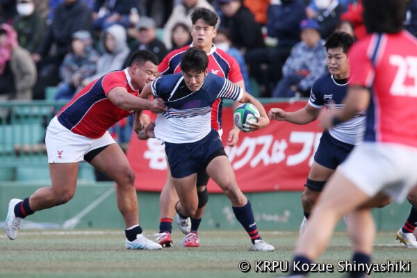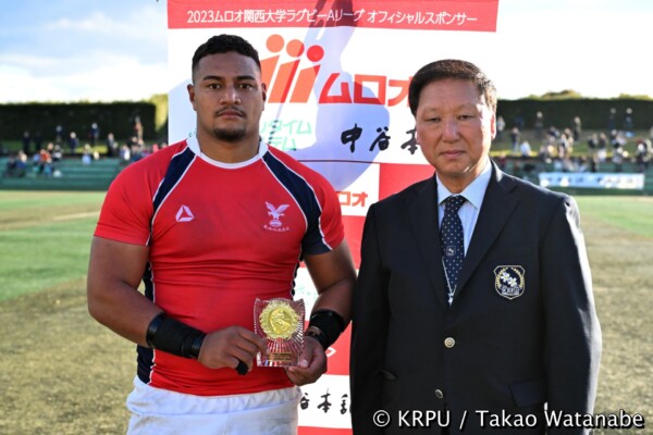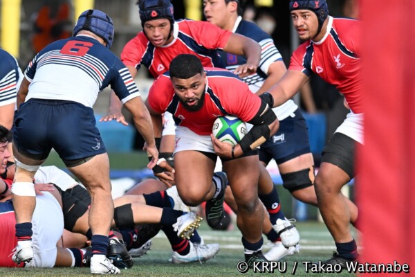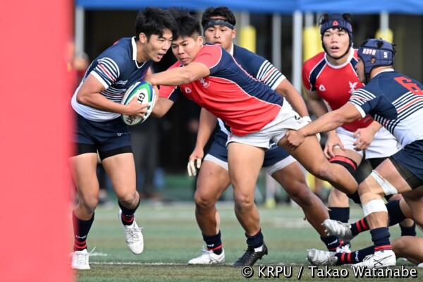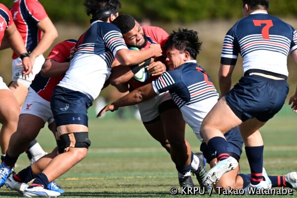 京産は、前半苦戦したものの、後半はアタックで4トライを挙げ、ディフェンスでは関学を零封した。試合を通じてはノートライに抑えての完勝、連覇中の王者の流石の地力であった。