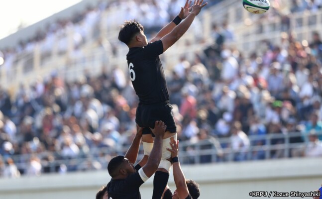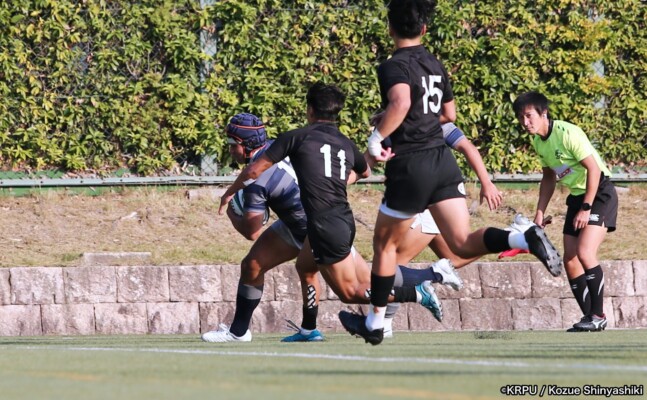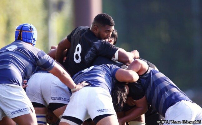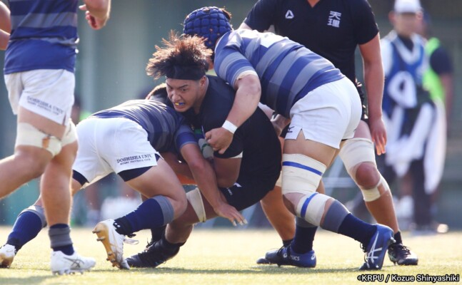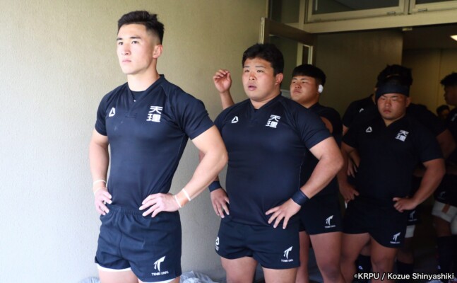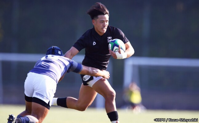 この後、同志社大がラインアウトモールで天理大ゴールに迫る場面もあったが、天理大のDFに阻まれる。
