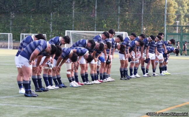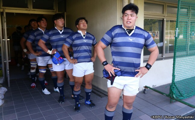 要因はいろいろあると思いますが、春からやってきている強みを出すことが出来ていないところだと思います、部員もいい時の状態はわかっているので、今日の試合に関しては、後半は二人でしっかりタックルしてブレイクダウンでボールに絡めて得点を与えなかった場面もがありましたが、それが出せてない時間帯があり、そこを埋めていこうと思います。