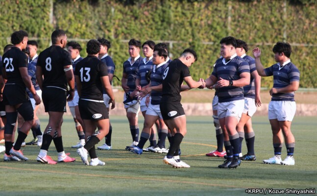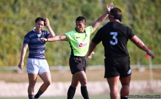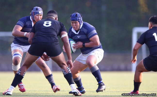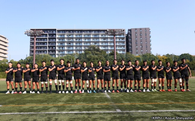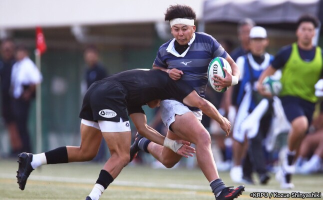 21分⑬ハビリ、30分HO⑯稲嶺翔太、33分⑧ヴァカタ、41分WTB⑪藤原竜之丞とトライ。最後はSO㉒中村仁がGKを決め、大差で試合を終えた。(5-59)
