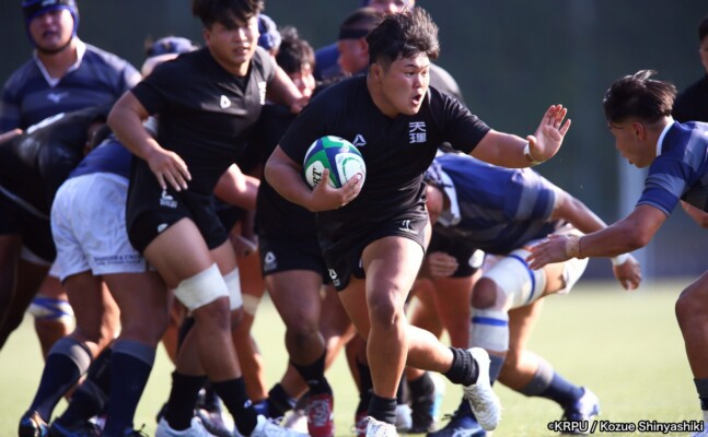 天理大は体をしっかり当てながら1対1で相手に勝ち、確実にゲインを図っていく。