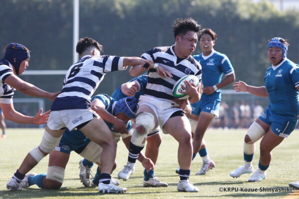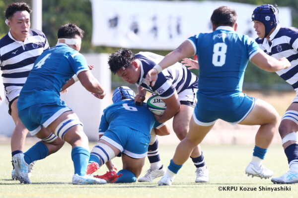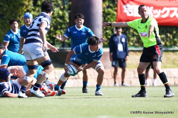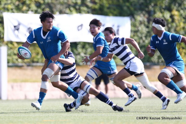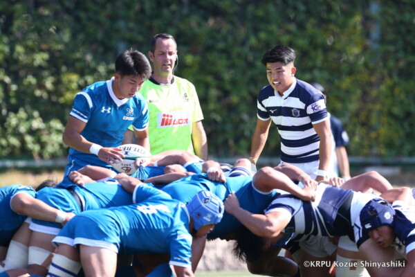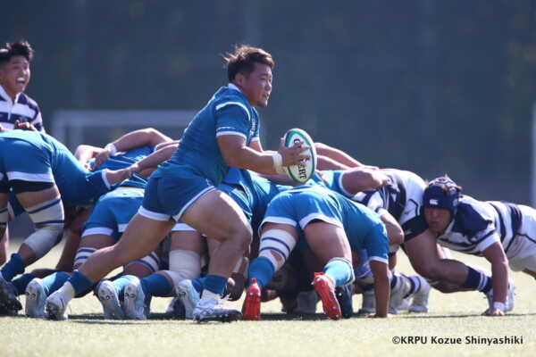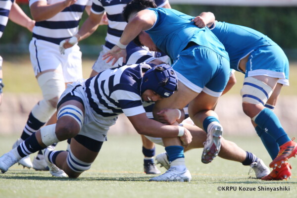 敵陣に入ってスコアするという事にフォーカスしていましたが、自分達のミスで自陣に居る時間が長くなり、関大のアタックに食い込まれる場面がありましたが、FW陣が我慢して(ボールを)取り返してくれました。