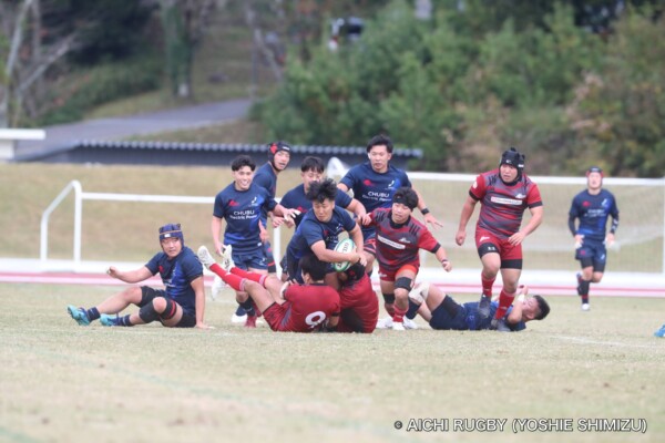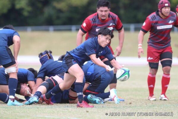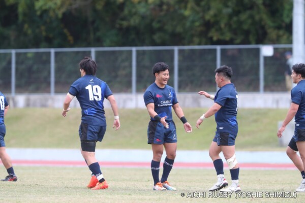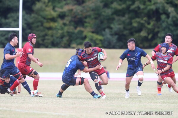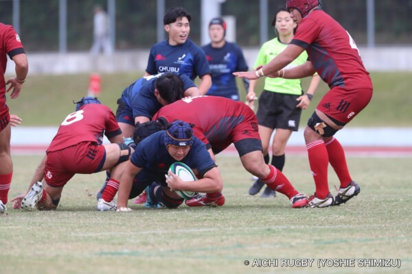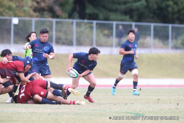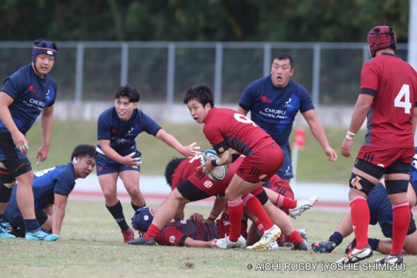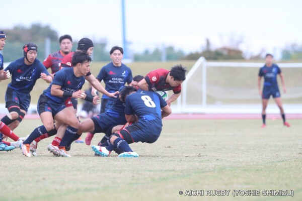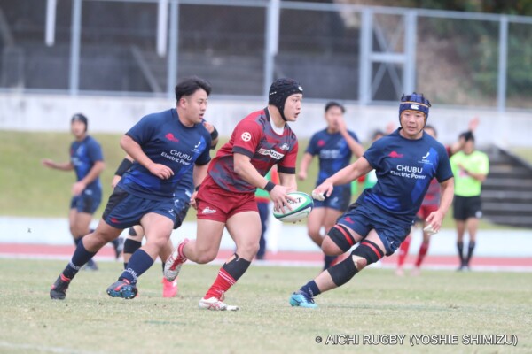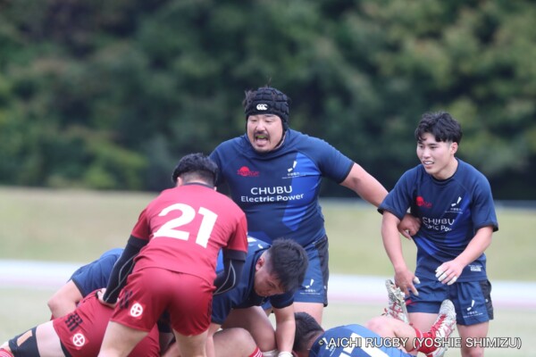 前半8分、中部電力はラインアウトからの連続攻撃にてペナルティアドバンテージをもらい、12番棚橋優大がチップキックを蹴りチャンスを得るも、島津製作所の好守に阻まれる。中部電力はアドバンテージでショットを選択し、10番津田貫汰がPGを決める、3-0。