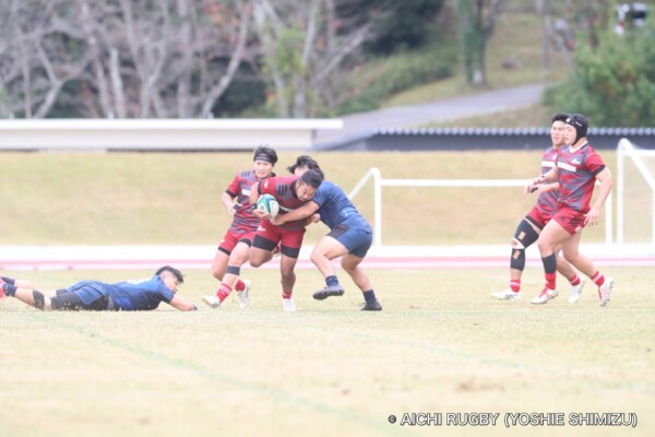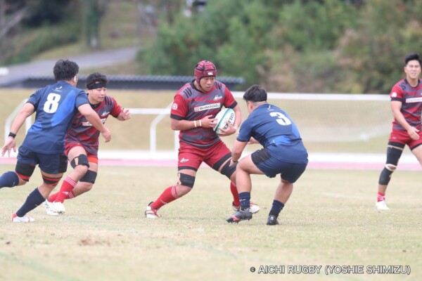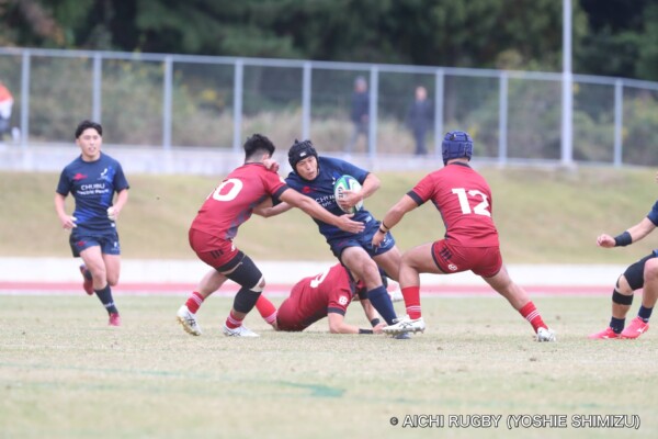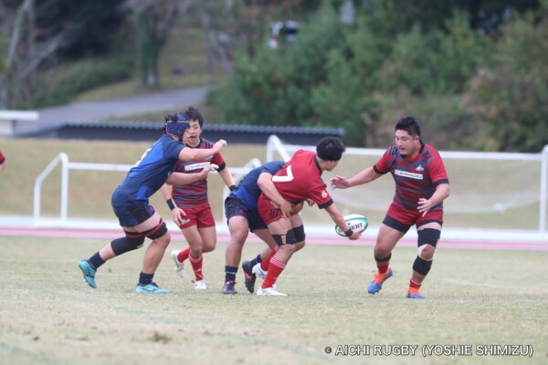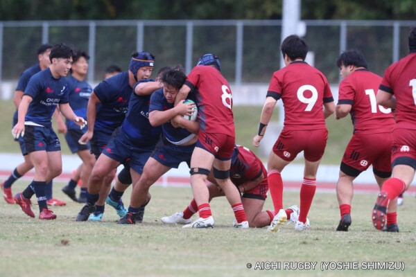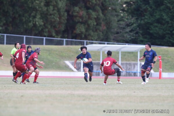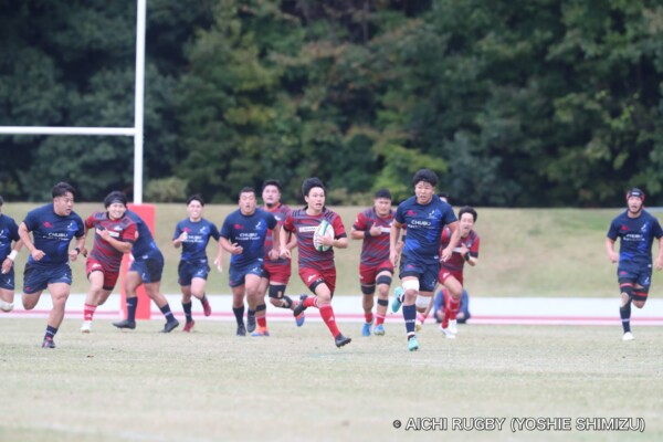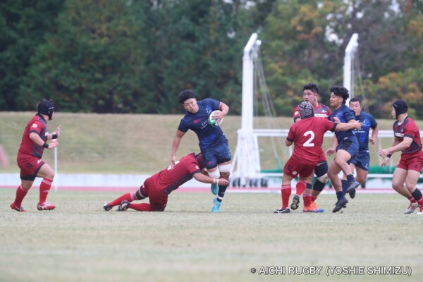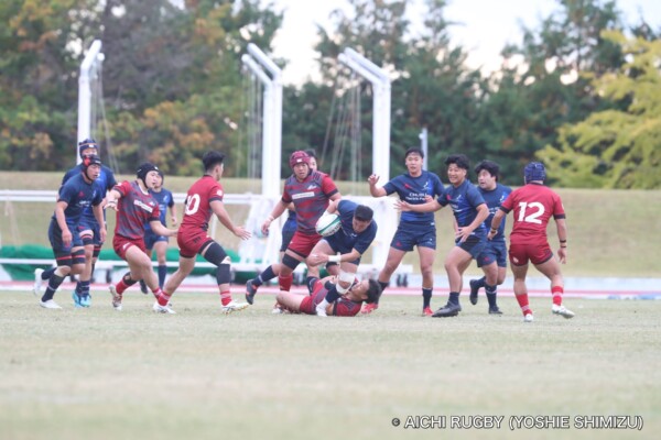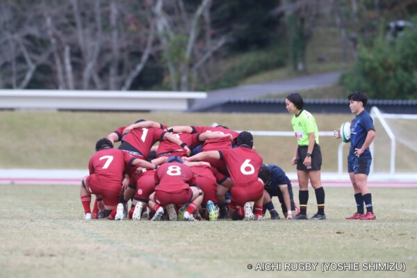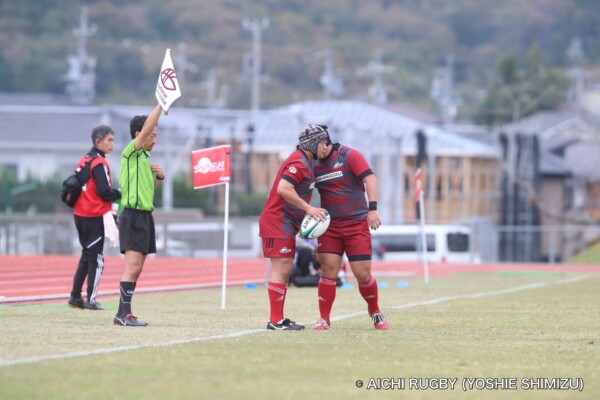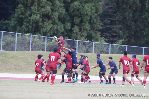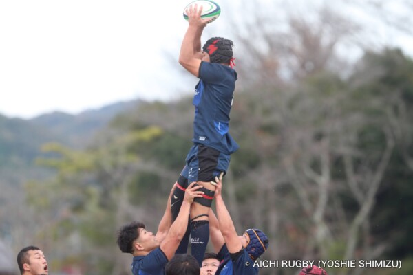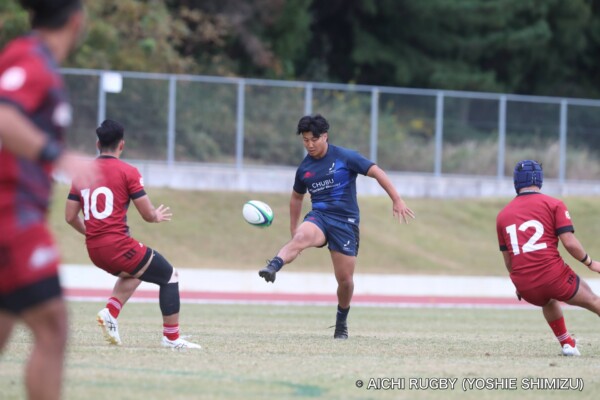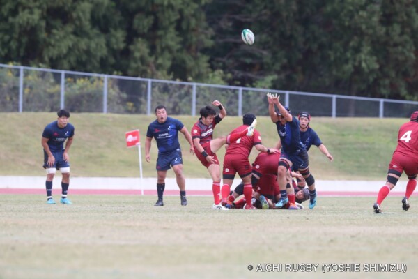敵陣10mでの敵ボールラインアウトをスチール成功。その後のラック内でオフサイドの反則を得て、ショットを選択し、10番津田貫汰がPGを狙うも失敗。