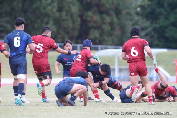 ゴール前でラックを積み重ねるも中部電力6番長田拓真が島津製作のパスをインターセプト、島津製作所の良い流れを断ち切る。