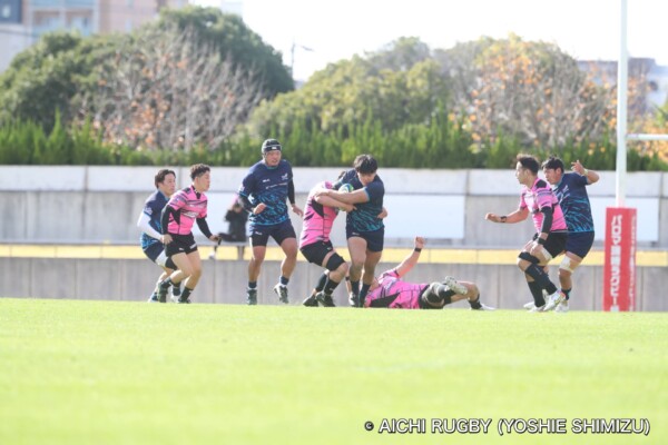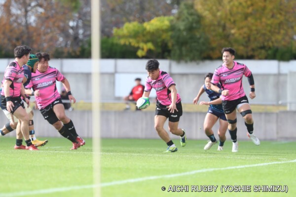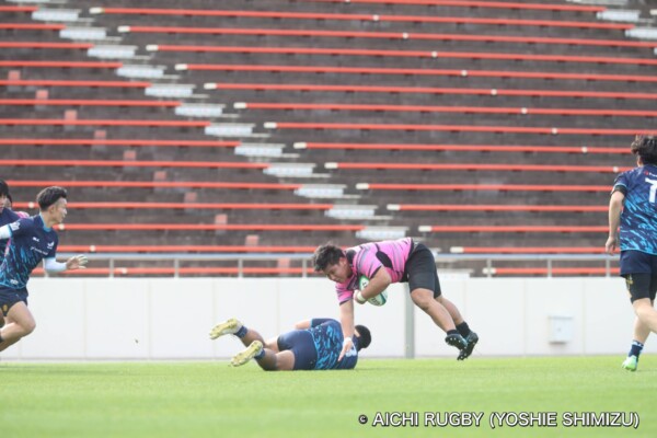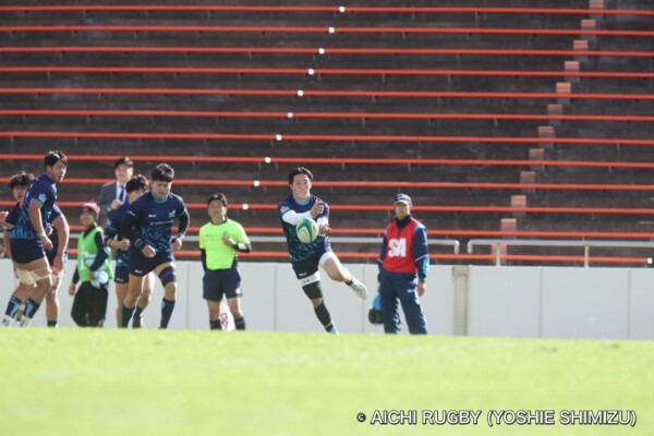 一つずつ丁寧に回し、11番鈴木淳也がトライ。12番伊藤匠のキックも成功し、7-19。
