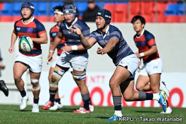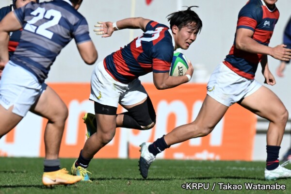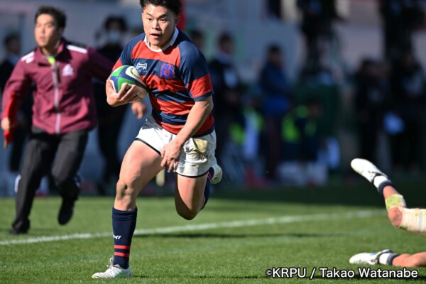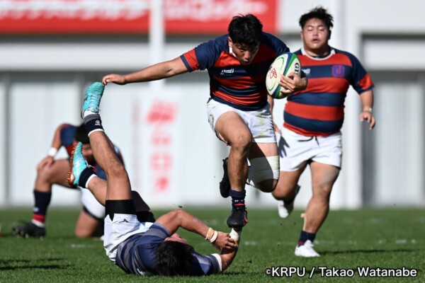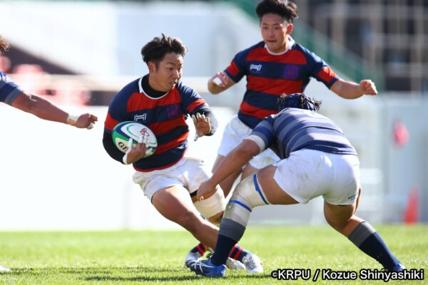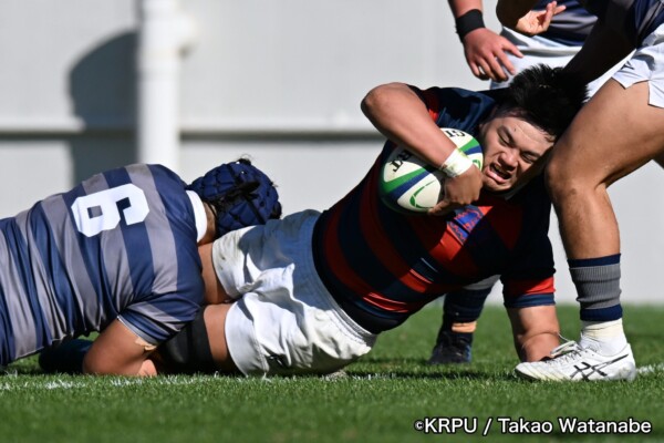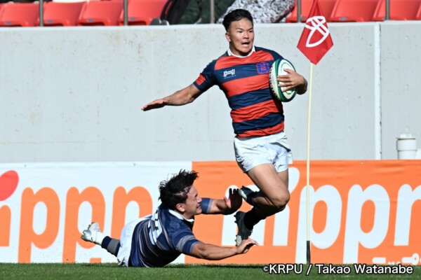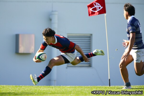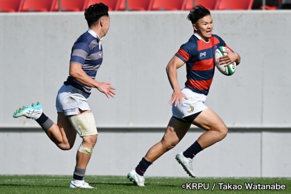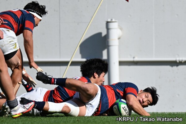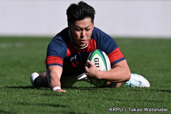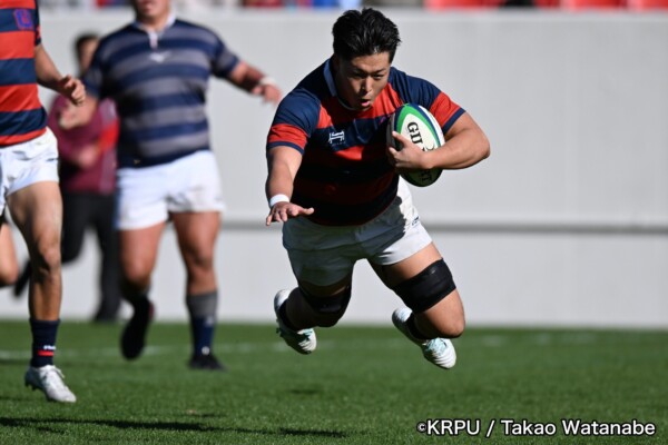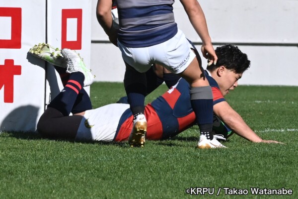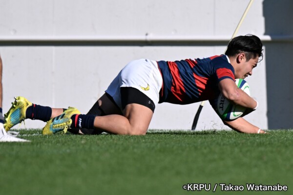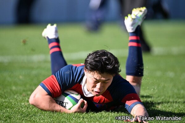 41分に同志社陣ゴール前のラインアウトがちぎれた後のラックから左へ展開し14番山本がゴール下へトライし、22番澤田がゴールも決めて48-7と同志社を退けた。