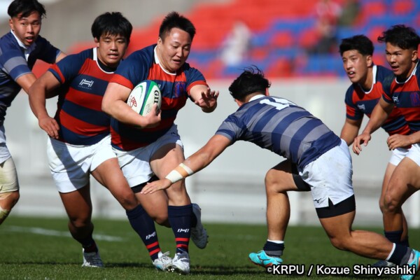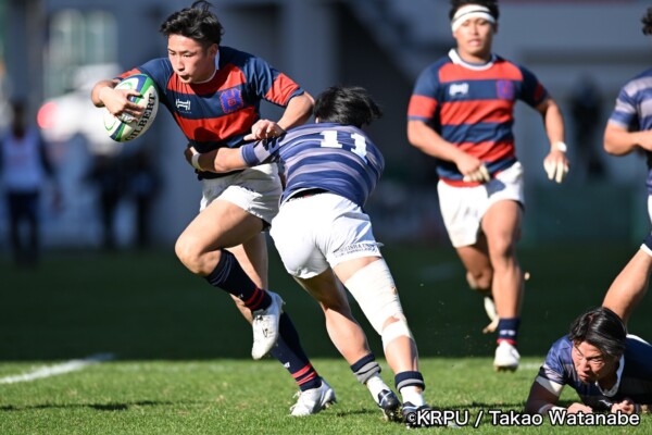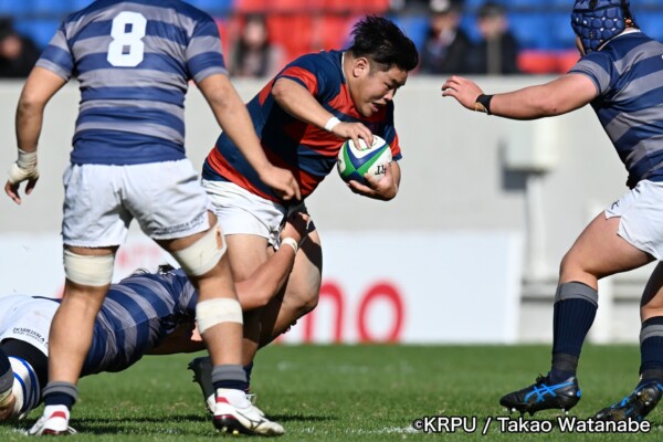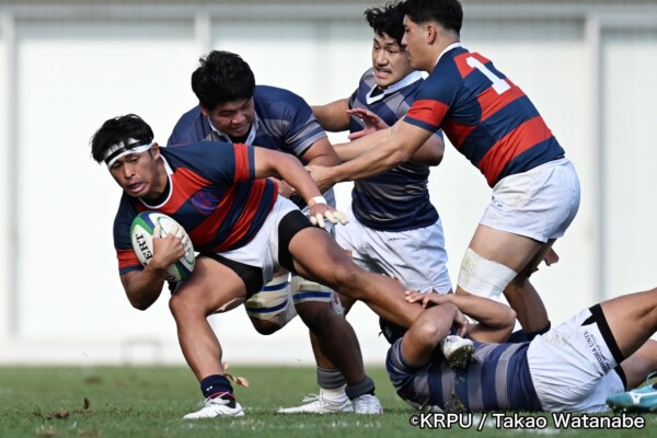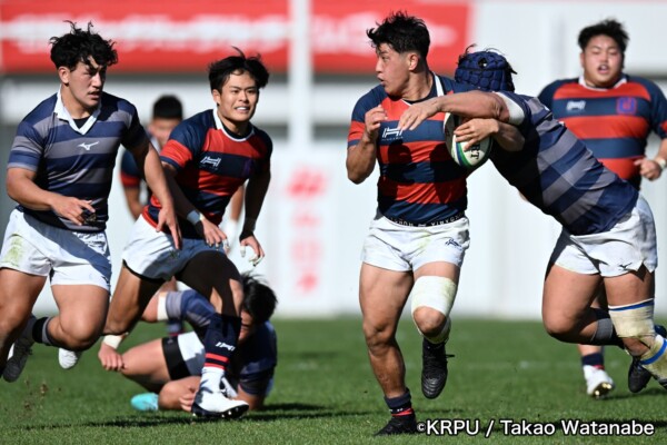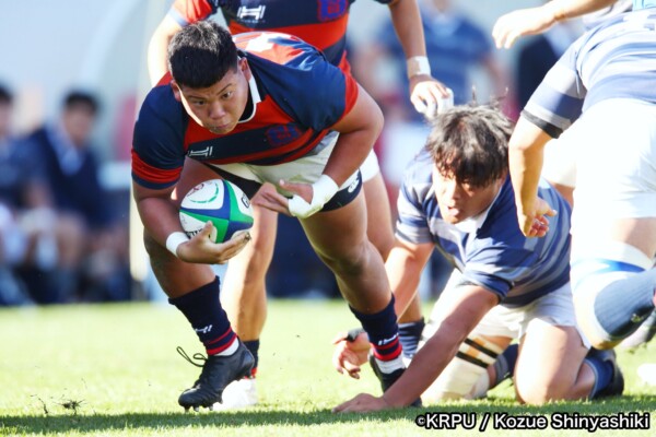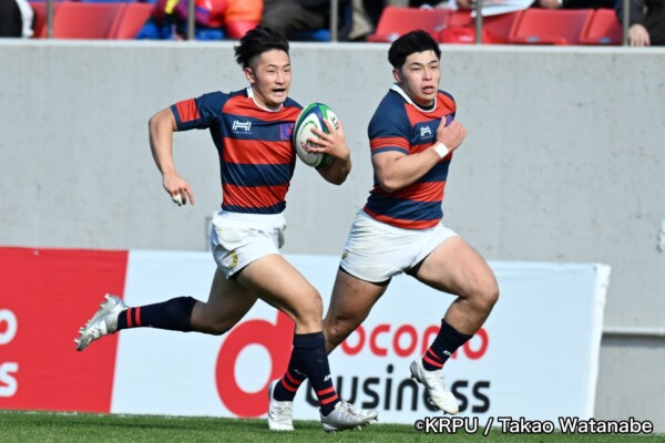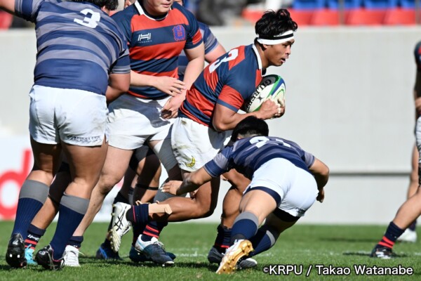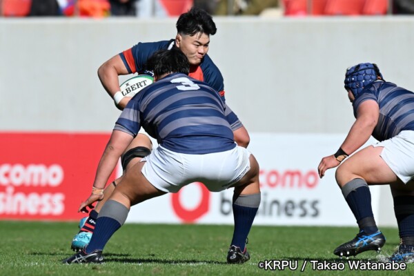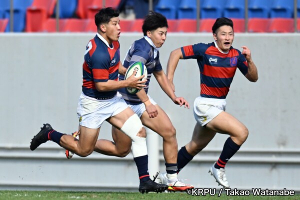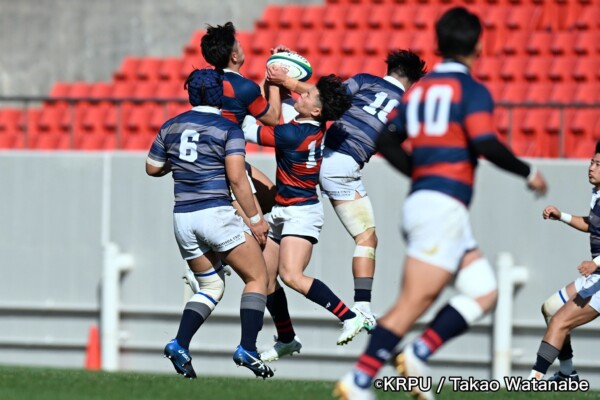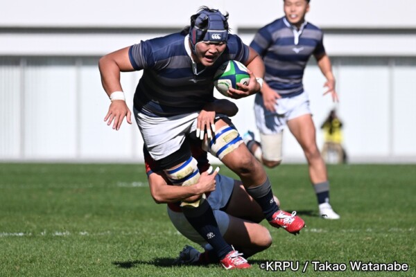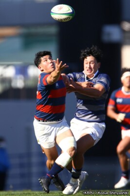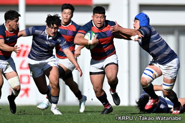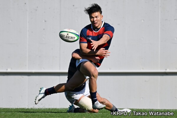 41分に同志社陣ゴール前のラインアウトがちぎれた後のラックから左へ展開し14番山本がゴール下へトライし、22番澤田がゴールも決めて48-7と同志社を退けた。