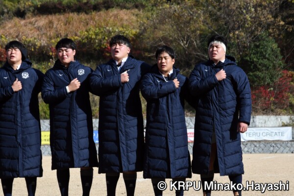 春シーズンこの場所(親里)で、京都産業大学さんに負けてからずっと負け続けて苦しかったですが、最後に勝てて良かったと感じています。