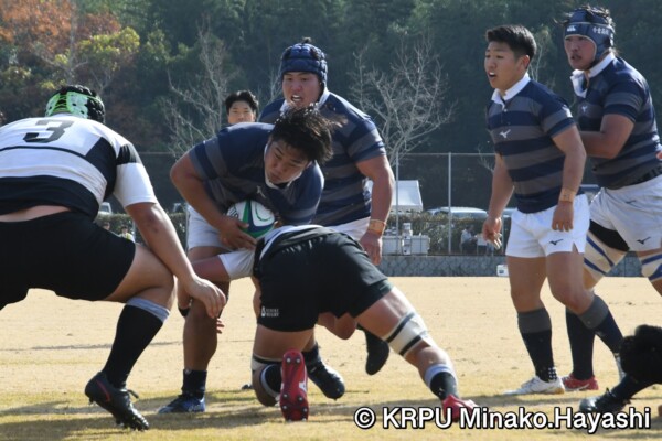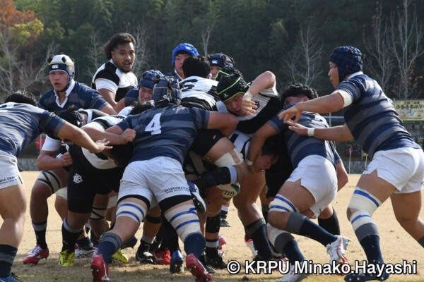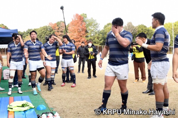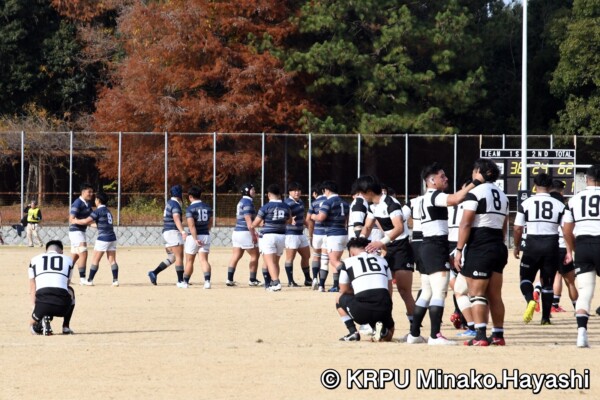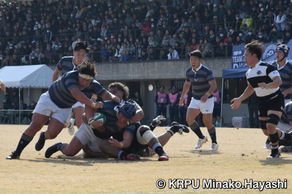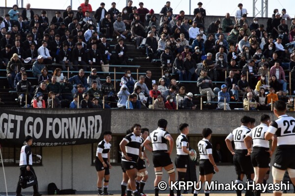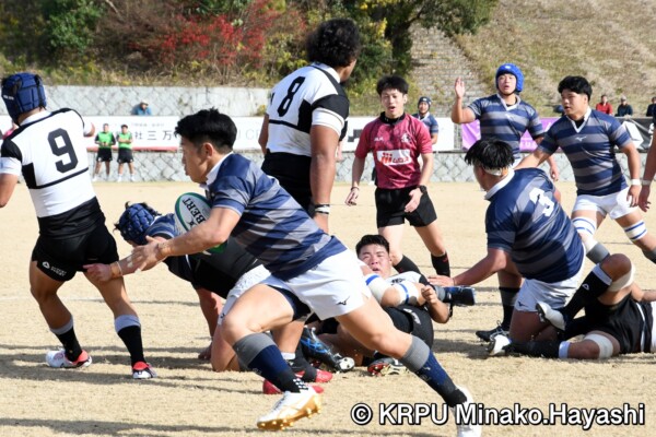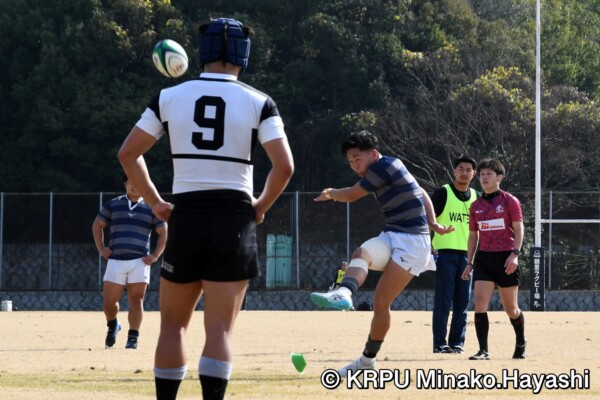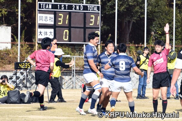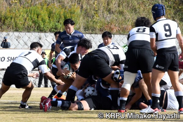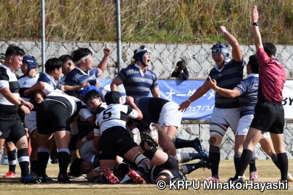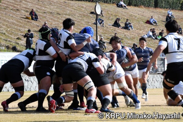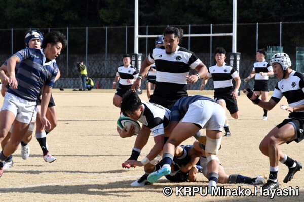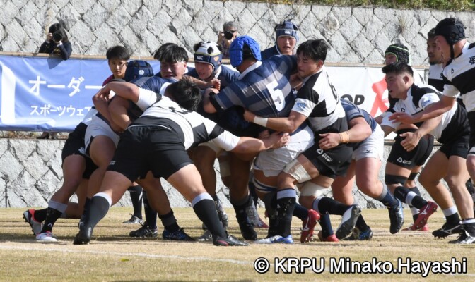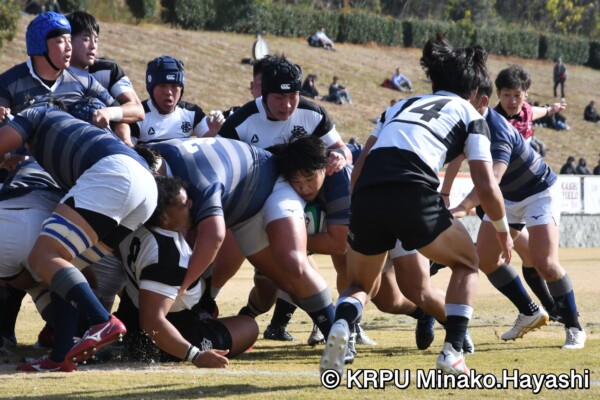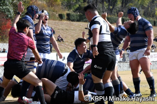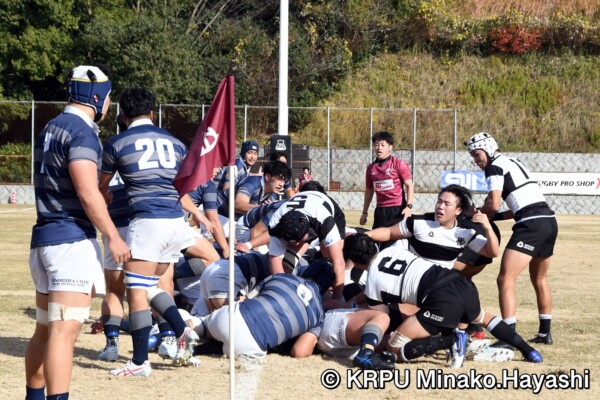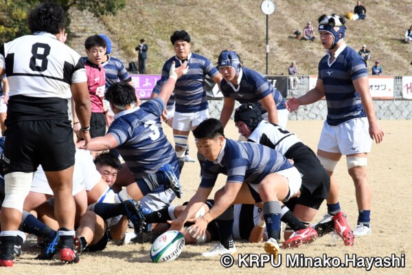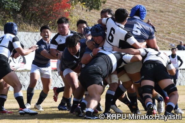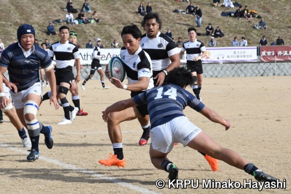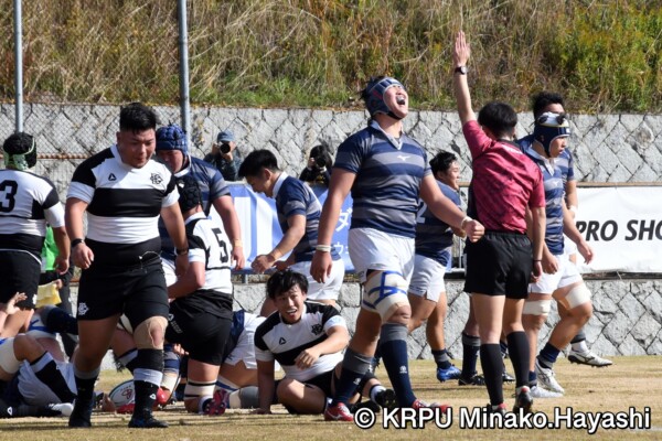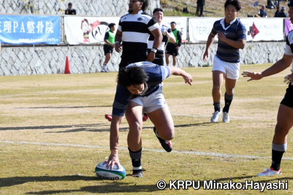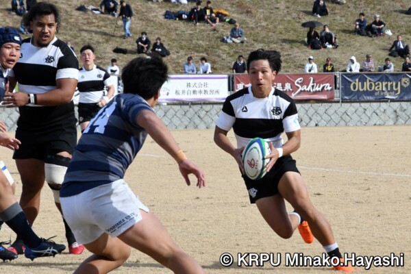 大体大は、12分にCTB⑬羽田賢信のブレイクからFB⑮林哲大のトライ(GK成功)、21分にもNO8・HO⑧シオネ・マウがトライを返すも勝負の行方は変わらず。