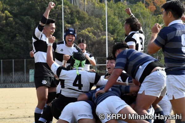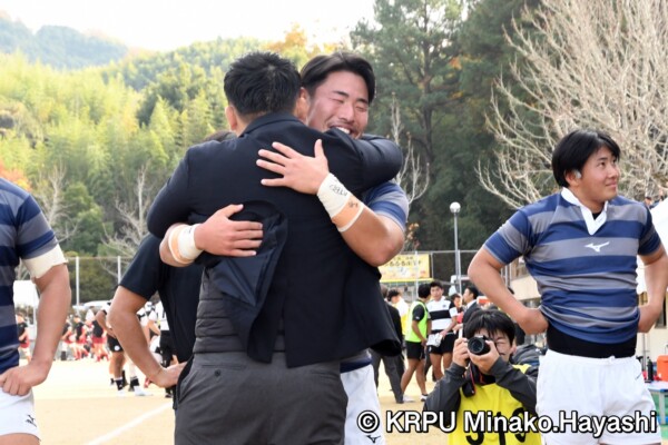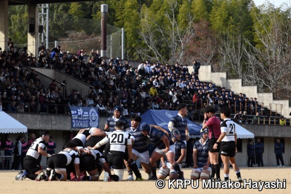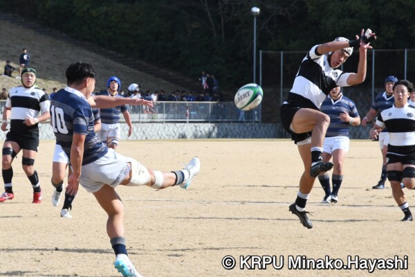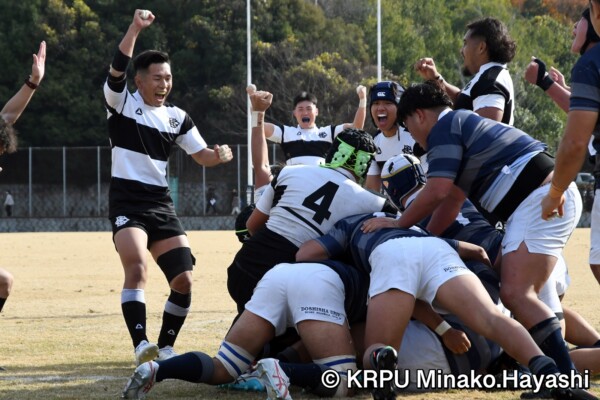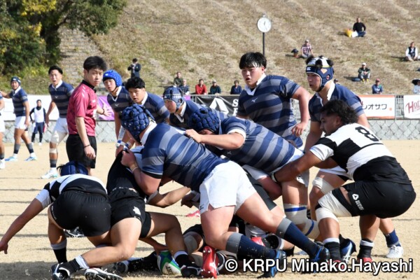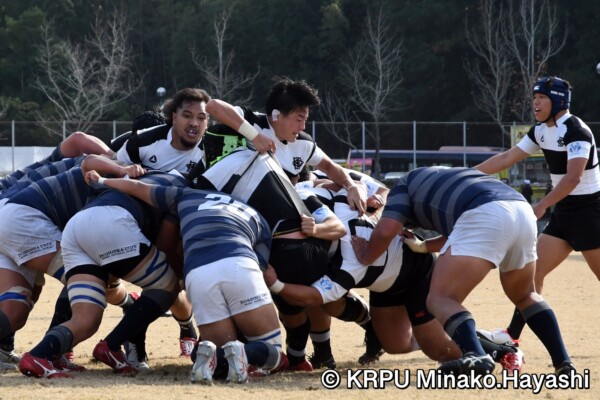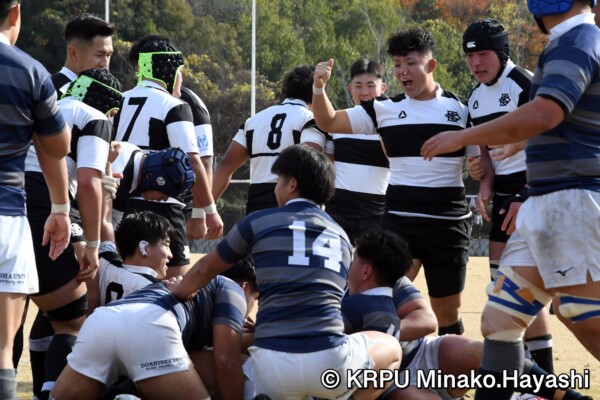 その間、同志社もPGで引き離し。最後は、HO②長島幸汰のトライで追加点を奪い、終始危なげなく入替戦を凌いだ。(62-21)