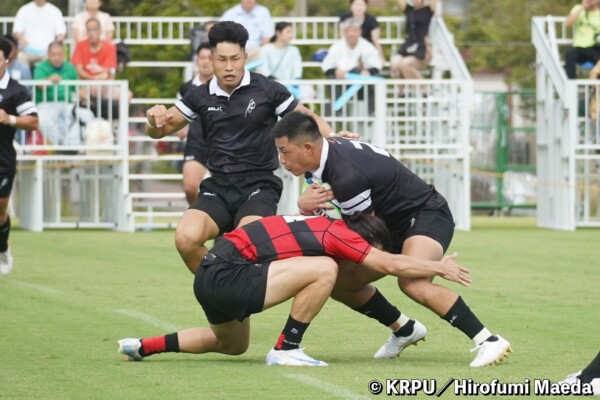 しかし後半は、地力に勝る府警が序盤から5本のトライを積み重ね、ユニチカの反撃をトライ1本に抑えて、43-21で勝利。府警がシーズンを無難にスタートした。