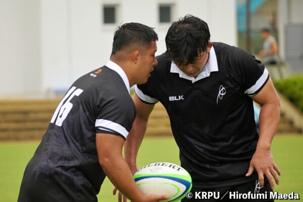 前半は、練習してきた前に出るディフェンスで良いところが出ました。敵陣に入って戦いたかったのですが、風上だったのでなかなか敵陣に入れずスコア出来なかったのが反省点です。後半は、地力の差が出た形になってしまい、(府警に)前に出られ過ぎていました。この点は次節に向けて修正したいと思います。
