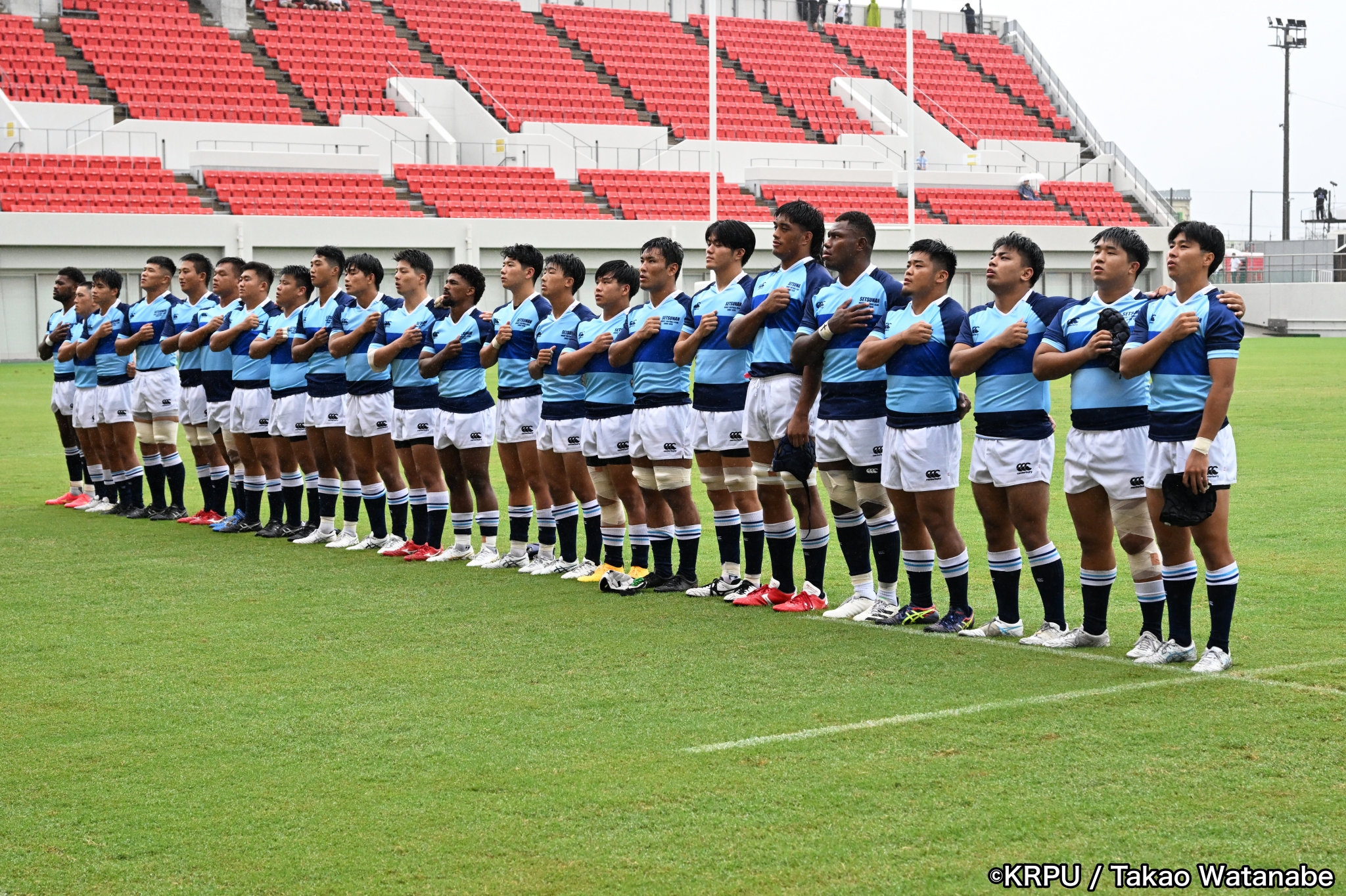 2024ムロオ関西大学ラグビーAリーグ8チームが東大阪市花園ラグビー場に集結し、開幕節を迎えた。第1グラウンドの第1試合では、摂南大学VS天理大学が対戦。