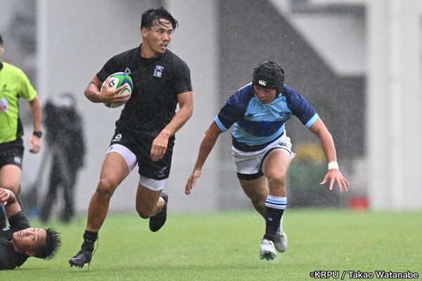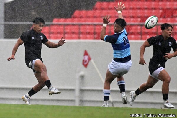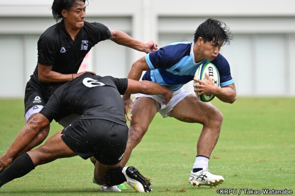 最後に、摂南大については何度も相手ボールのラインアウトを確保したり、相手の反則を誘う接点での防御が、天理大学についてはディフェンスのみならず、リズムの良いアタックも随所に見られたが、雨天の影響もあったのか、両チームとも、決定的なところでの反則やミスが多いゲームであった。お互いに次節までに修正して試合に臨んでくれることを期待する。