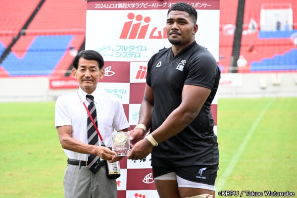 POMには、随所に堅実なプレーで勝利に貢献した天理大NO8⑧パトリック・ヴァカタが選ばれた。