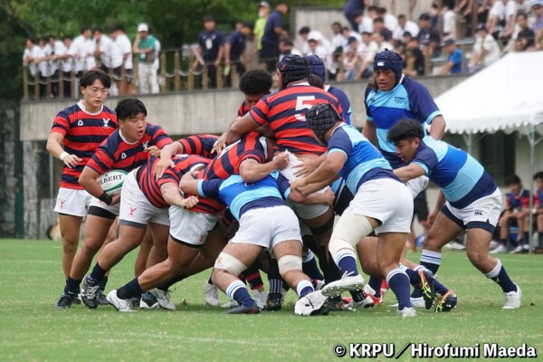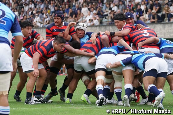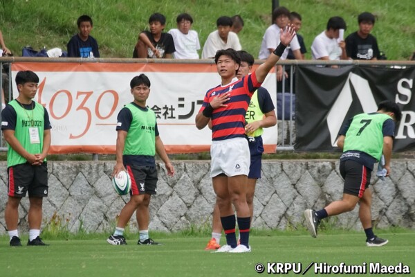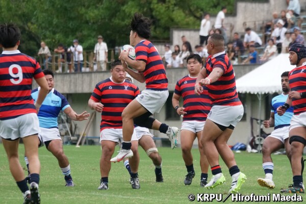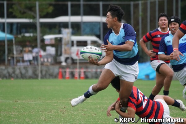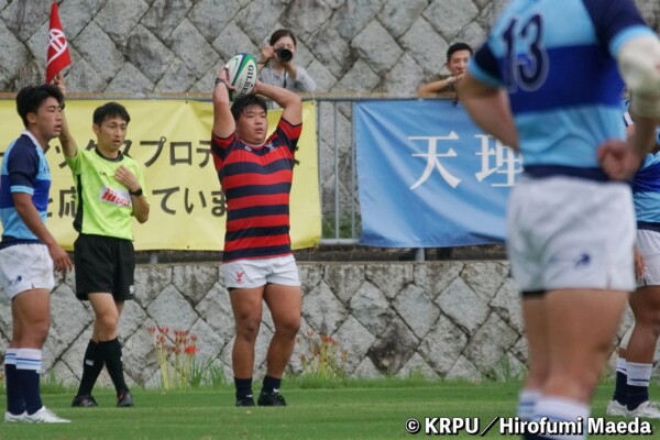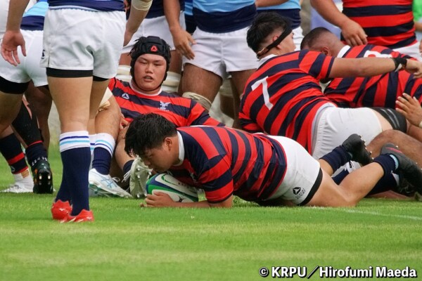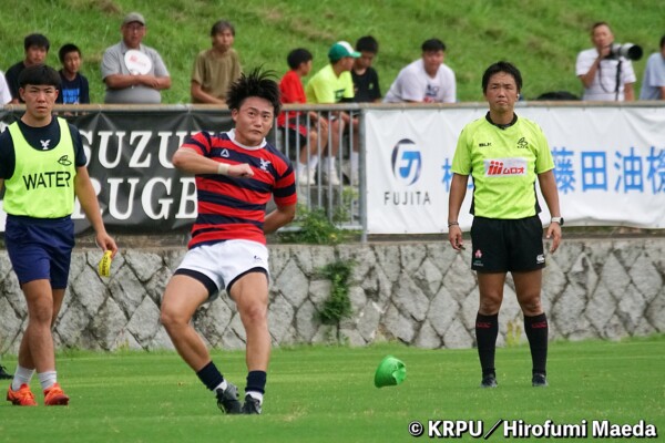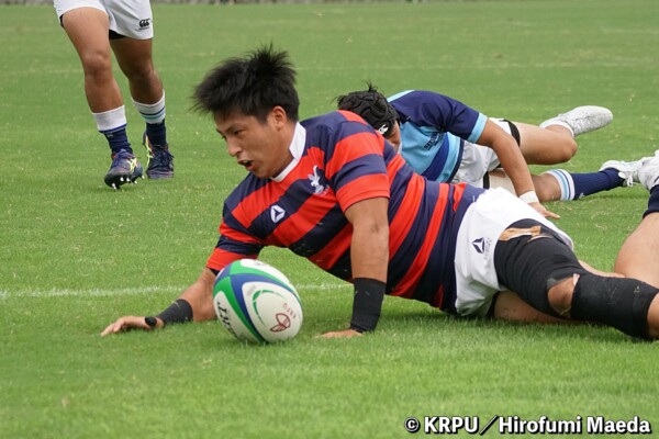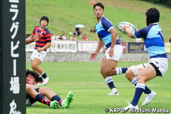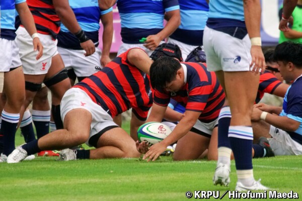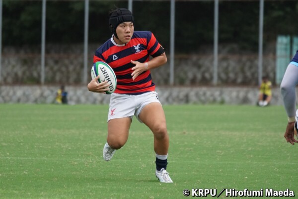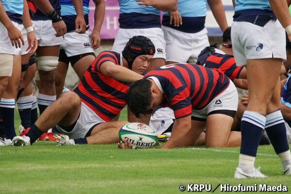 42分、京産大が敵陣ゴール前20m左ラインアウトから右に展開し途中出場したSH㉑高木城治からパスを受けた同じく途中出場したPR⑱川口新太が右中間にトライ、GKもSH㉑高木が成功。28-67としてノーサイド。