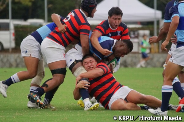 京都産業大学が素晴らしいアタックとデフェンスで67-28と勝利し勝点5を獲得。