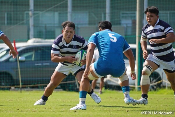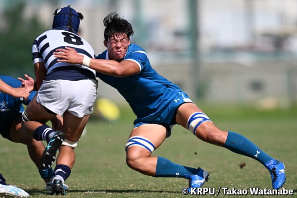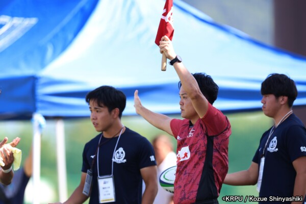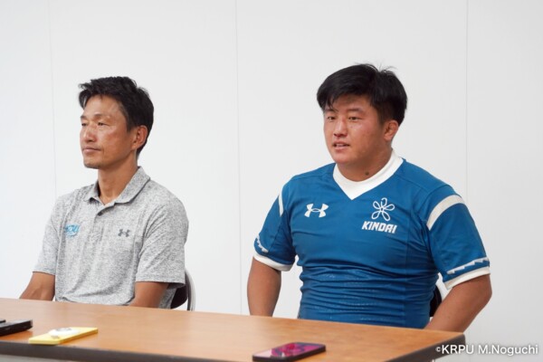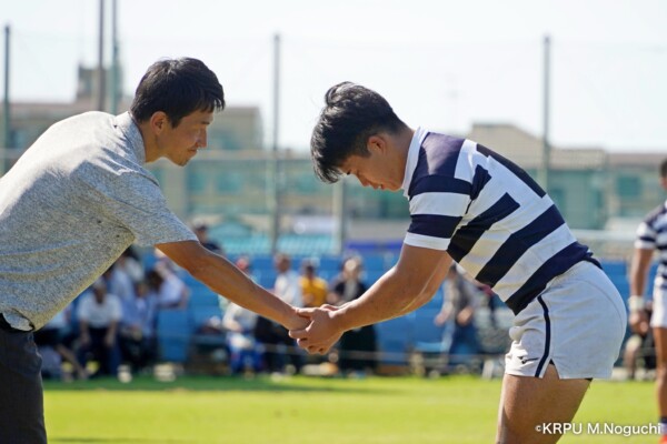 本日も暑い中ありがとうございました。初戦を前半はいい形で入り、後半は思うような形でなかったので、そこをこの2週間の間で修正して、自分たちが常に成長していくというワードを出しながらやってきました。そこについては、しっかりといい準備をして臨んだつもりです。今日のゲームについては、関西大の徹底したキックとそれに対するディフェンスとチェイスに敗れたのかなと思います。アタックして、いいブレイクしてトライにまで繋げるということは出来ましたが、ただ自分たちの強みを出せなかった部分について言えば、スクラムにフラストレーションが溜まった部分かなという風に感じています。ここからは、関西の優勝と全国のベスト4を目指していくには、もう負けることはできませんので、次戦以降に向けてもう一度準備をして目標を達成できるようにやっていきたいと思います。