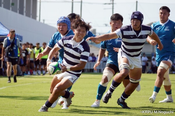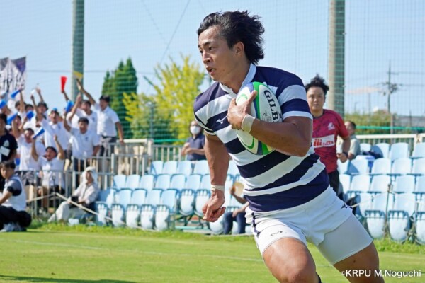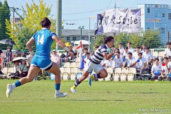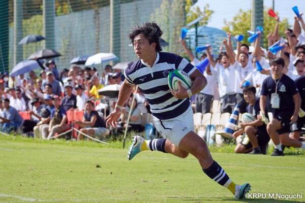 38分にも、関大⑪遠藤が連続トライ(GK成功)で1点差に迫る。(25-24)