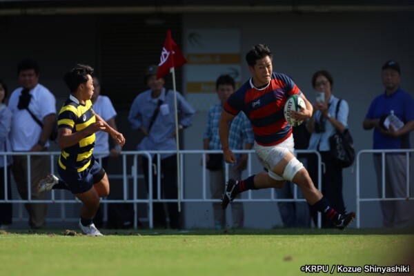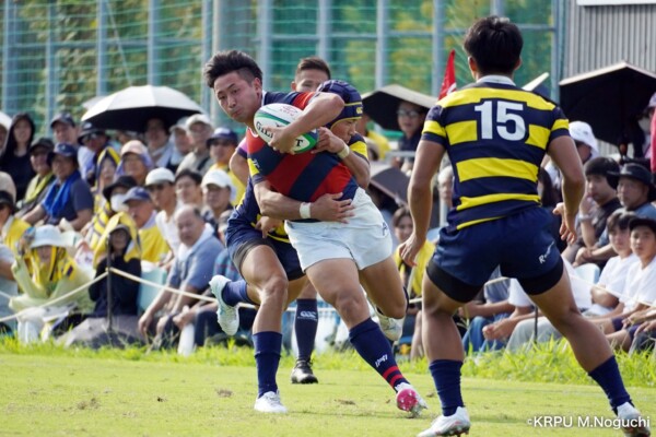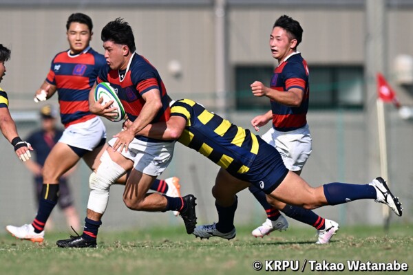 (立命館の)ディフェンスがすごく前に出てくる中で、深さを持てなくてタックルされるシチュエーションが多かったと思います。また、ブレークダウンで相手の方がサポートが早かったと思います。ここが反省点で、クリーンに出せていたら、もうちょっと良いアタックができたと思います。