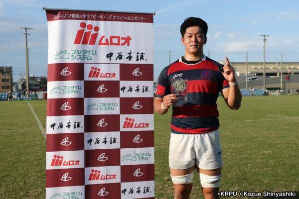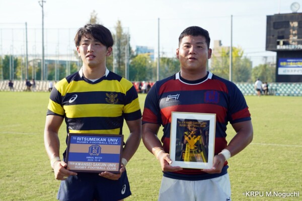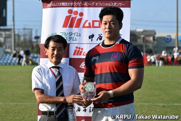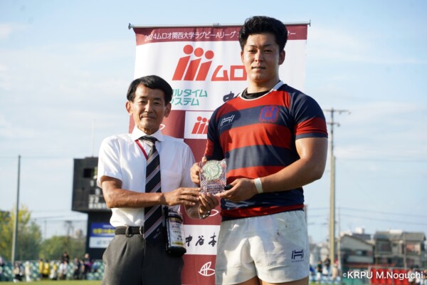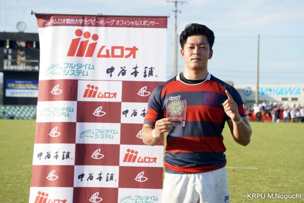 POMにはハードタックルでチームを鼓舞し、逆転トライで試合を決めた関西学院大学NO8⑧小林典大選手が選ばれた。
