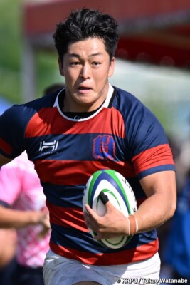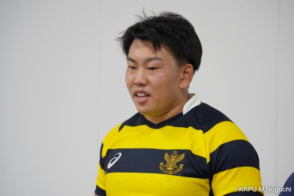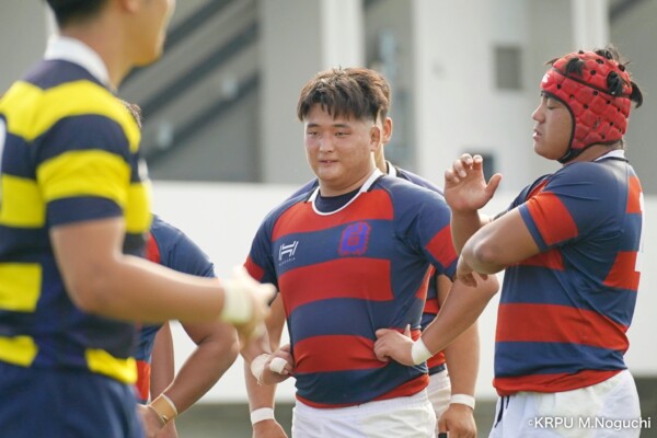 前節近大戦で悔しい負け方をしてしまったので、2週間、関学戦に向けてFW、BK一丸となって準備してきました。前半はうまく機能してリードして折り返せましたが、後半はスクラムで劣勢になって、自陣での展開が多くなってしまい、(関学の)勢いに押されてしまったのが敗因だと思っています。しかし、(関学と)良い勝負が出来た事は自信になりましたので、1週間後に向けてしっかり準備したいと思います。