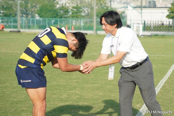 中林コーチを中心に、学生の分析チームが頑張ってくれて、しっかり準備が出来て今日の試合に臨む事ができました。良い準備が出来たら良いゲームが出来るだけのポテンシャルを(学生達は)持っていますので、いかに1週間、2週間の時間を上手く使いながら、良い準備をして良いゲームをするかという事です。その部分を今日の試合で実感として掴めましたので、次節、天理大学戦に向けても良い準備をして良い試合をするという立命館スタイルをしっかりやりたいと思います。