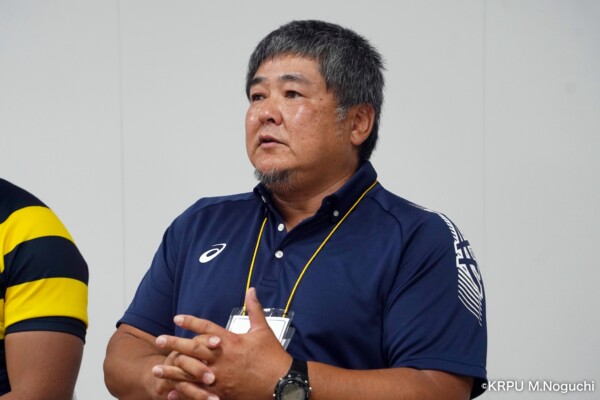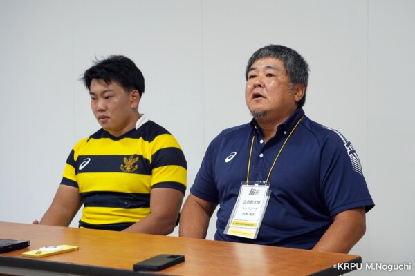 基本的には、スクラムとモールを立命館の強味にしていきたいと思っています。モールについてはある程度すでに強味として持っているのですが、スクラムは昨年から取り組んできて、今年も強化を図りながら55%位はノミネートしたいと考えてやっています。そんなプランの中で、後半入ったばかリで負傷交代になって、チームとしての整いの部分が崩れたかなと思います。しかし、その部分があっても、学生達は良く耐えたなと思っており、プランが崩れた中でも、学生たちが粘り強くディフェンスしてくれたというのは収穫だと思っています。