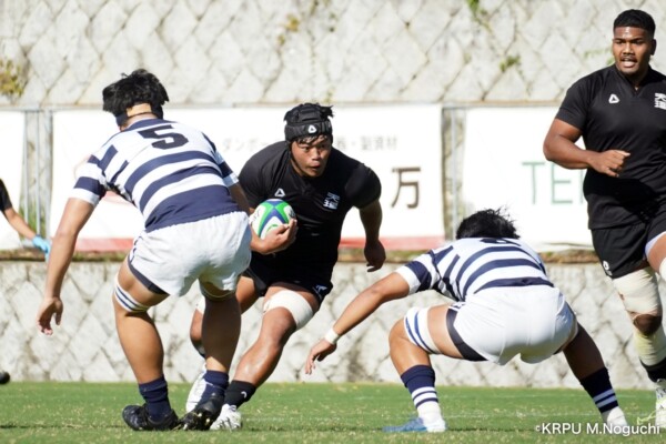後半の序盤、関大はゴール前5mでラインアウトの機会を得るも痛恨のミス。得意のモールを組むことができず、天理大に跳ね返されてしまう。
