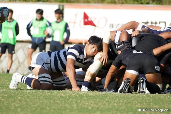 今年は春からPRにけが人が多く、今日は1番3番が前の試合とは変わった形に。1年生の小田は初スタメンながらがんばってくれたし、坂本も十分がんばれた。そこにリザーブに森が控え途中からいいスクラムを組んでくれたし、井上は去年の選手権のリザーブなので、これからの戦力を考えたときに今日は良かった。ここにまた松野が戻り、他のけが人が戻り、最終的にベストなスクラムが組めるようなメンバーを選んでいたらと考えている。