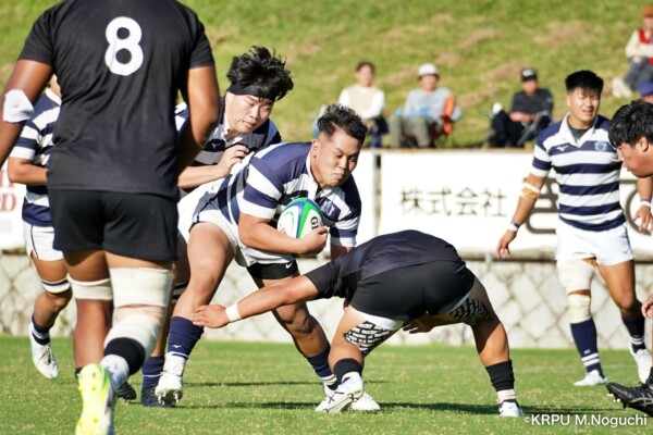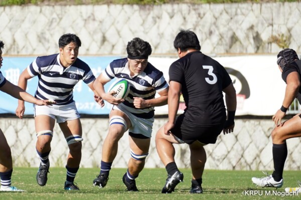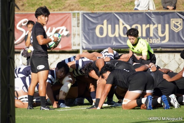 ゲームを通して、敵陣22mの中に入って取り切れなかった。あとペナルティ、規律で少し乱れてしまいスコアされこの点差に繋がった。次節の摂南大学もオフロードでアタッキングラグビーをしてくる。自分たちがどうディフェンスし規律高くできるかの勝負になる。3週間期間空いてるので、しっかり準備していきたい。